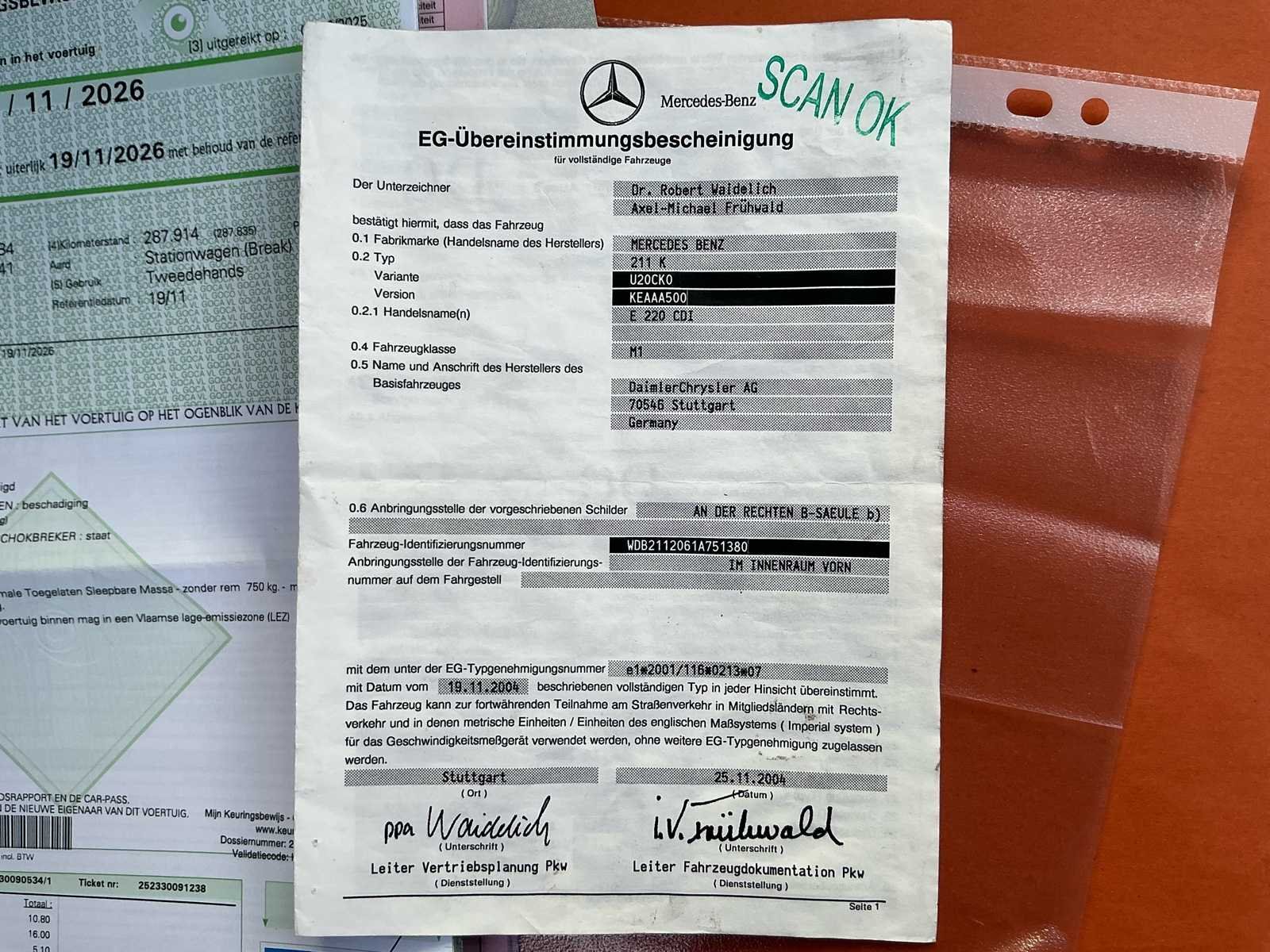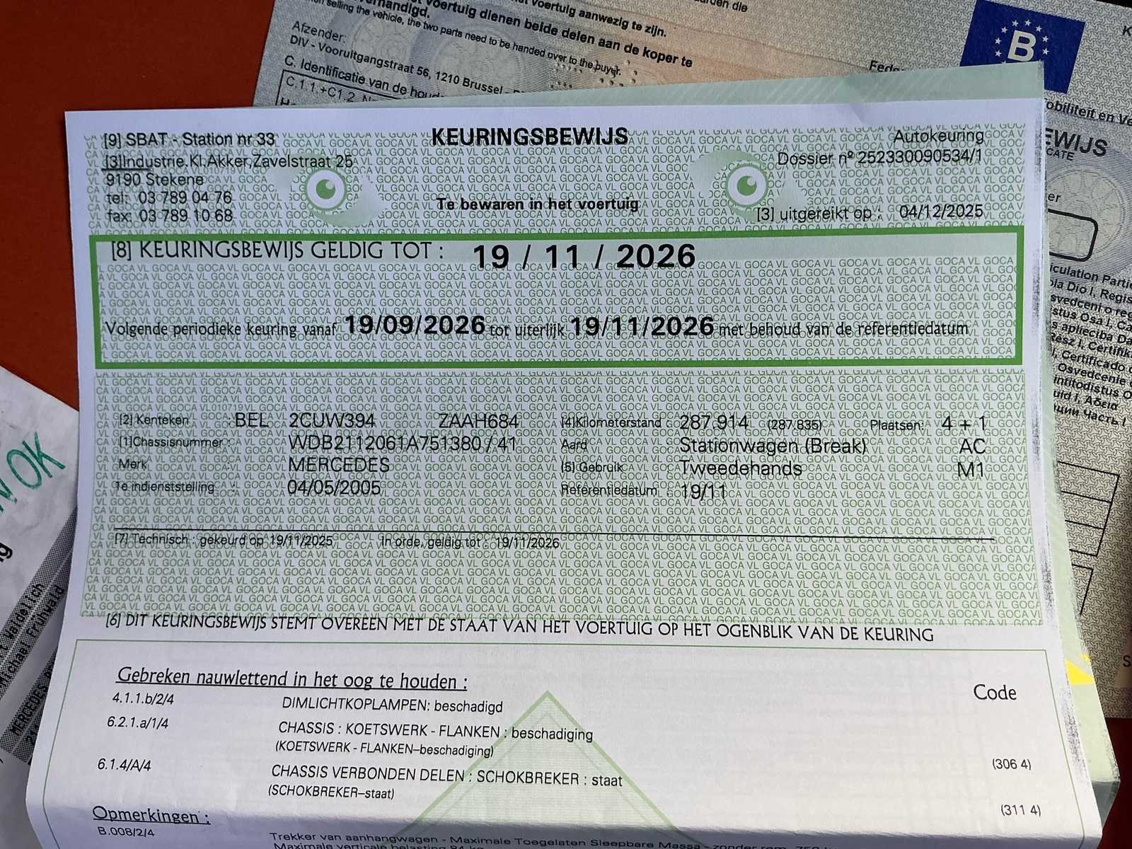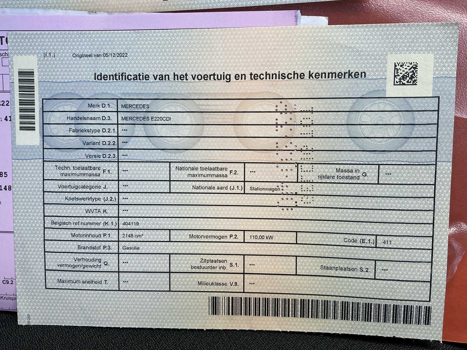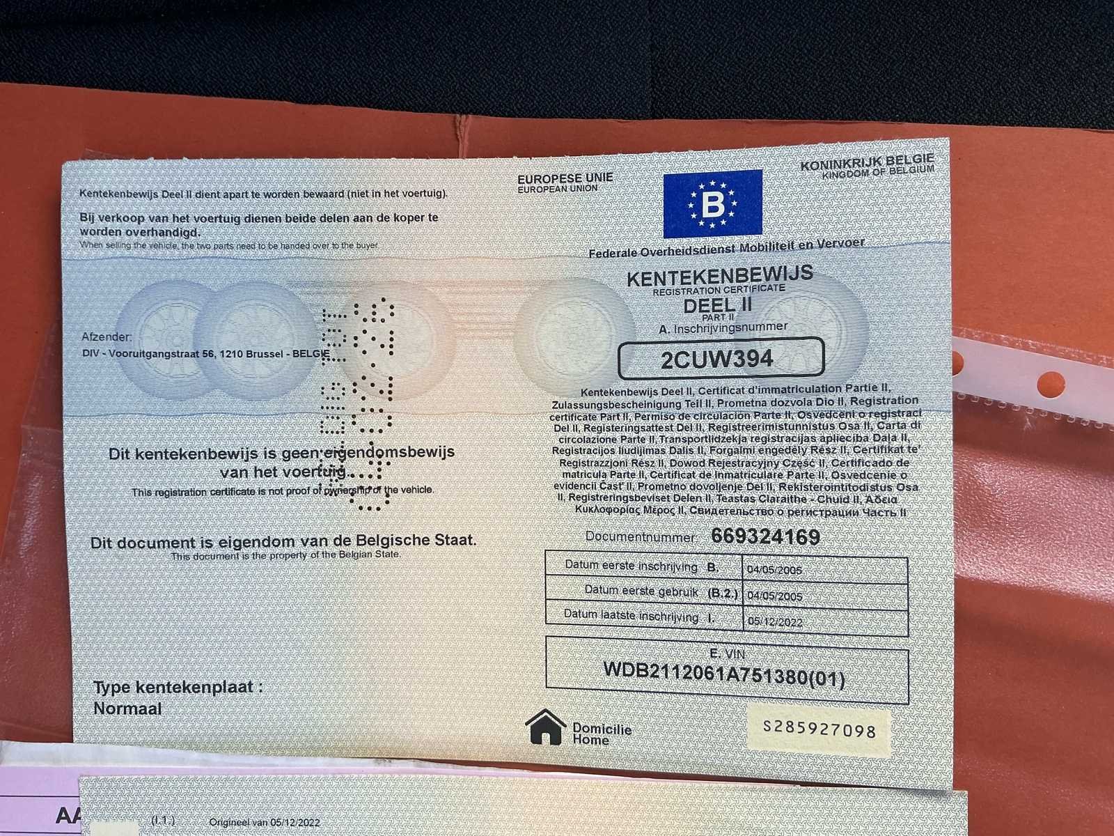No Kenteken: 2CUW394 Merk: Mercedes Model: E220 CDI Bouwjaar: 2005 Afgelezen kilometerstand: 287947km Cilinderinhoud: 2148cc Vermogen (kW): 110kW Brandstof: Diesel Chassisnummer: WDB2112061A751380 Datum eerste toelating: 04/05/2005 Nationaliteit documenten: Belgische Start en rijdt: Ja Keuringsrapport geldig tot: 19/11/2026 Vavato voert geen technische keuring uit.: true Inschrijvingsbewijs - deel 1 : Aanwezig Inschrijvingsbewijs - deel 2: Aanwezig