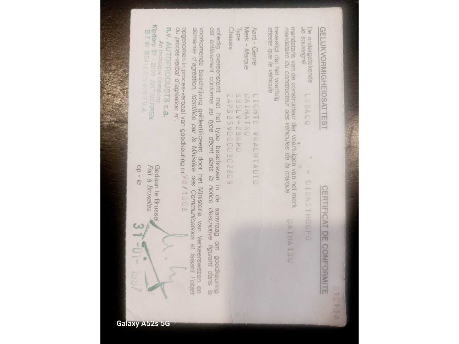Non Merk: Daihasu Type: Camionnette Bouwjaar: 1997 Afgelezen kilometerstand: 30401km Brandstof: Benzine