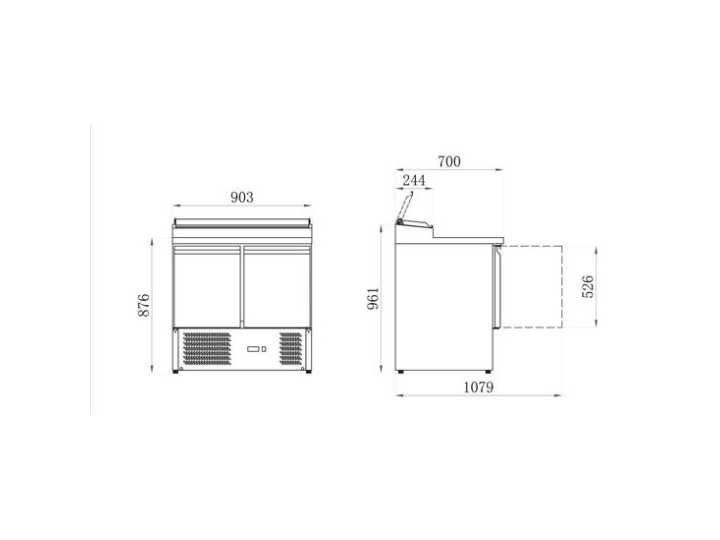 De saladette tafelkoelkast met twee deuren heeft kleine GN-trays om ingrediënten zoals tomaten, olijven en kazen op te bergen die nuttig zijn voor het bereiden van gerechten. Daarnaast zijn deze roestvrijstalen bakken uitgerust met een klapdeksel om een optimale conservering van verse producten te garanderen. Deze saladette-koelkast wordt gebruikt in broodjeswinkels en buffetrestaurants. Non Model: Saladette Compacte Refrigérée 2 portes Inox à Toit Ouvrant Product type: Saladette koelkast met 2 deuren roestvrijstalen deksel Totaal netto inhoud: 240l Spanning: 230V Gewicht: 70kg Lengte: 90cm Breedte: 70cm Hoogte: 105cm Materiaal: AISI 304 ROESTVRIJ STAAL
