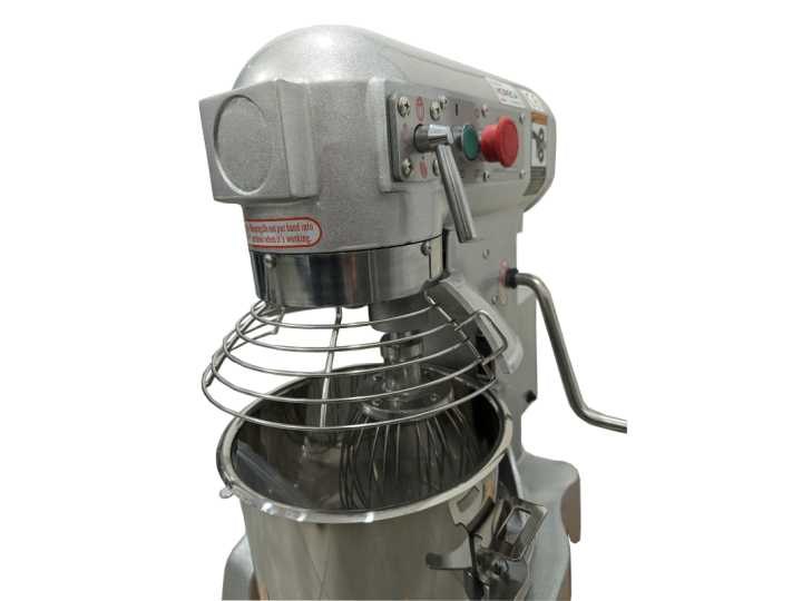 De 10 Quart Planetaire Mixer is ontworpen van roestvrij staal voor uitzonderlijke duurzaamheid. Het heeft een vermogen van 0,45 kW en een planetair aandrijfsysteem dat zorgt voor homogene menging. De 10-liter kom kan tot 5 kg pizzadeeg en 3,5 kg brooddeeg kneden, met drie instelbare snelheden (100/178/390 RPM). Geleverd met een haak, garde en spatel, is hij ook uitgerust met een transparante veiligheidshoes met verwijderbare opening. Non Model: Batteur Mélangeur Planétaire de 10 Litres Product type: Mixer Kleur: Zilver Lengte: 45cm Breedte: 36.6cm Hoogte: 66.6cm Materiaal: Edelstaal