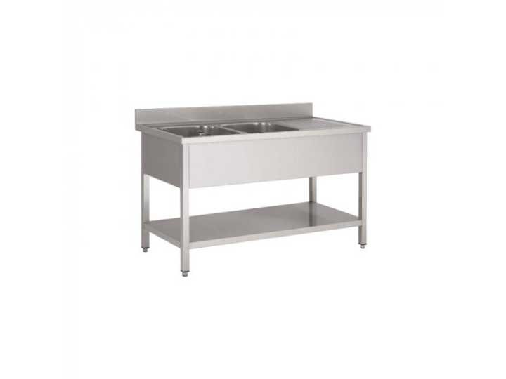 Ontworpen voor veeleisende keukens, voldoet deze dubbele vaatwasser perfect aan de behoeften van hoge flow en hospitality-hygiëne. De AISI 304 roestvrijstalen constructie biedt superieure robuustheid en duurzaamheid, met een geoptimaliseerde geometrie van 2 bakken aan de linkerkant voor soepel werk. De geïntegreerde subplank verhoogt de opslagcapaciteit met 20%, terwijl de verstelbare voeten zorgen voor een perfecte pasvorm voor alle professionele vloeren. 1.800 mm bruikbare lengte voor ruimtebesparing en verhoogde productiviteit. Ideaal voor collectieve keukens, restaurants en gemeenschappen. Non Merk: Matériel Horeca Model: Plonge avec 2 éviers à gauche avec sous-tablette 1800 mm Lengte: 180cm Breedte: 70cm Hoogte: 85cm Materiaal: AISI 304 roestvrij staal (voedselkwaliteit)