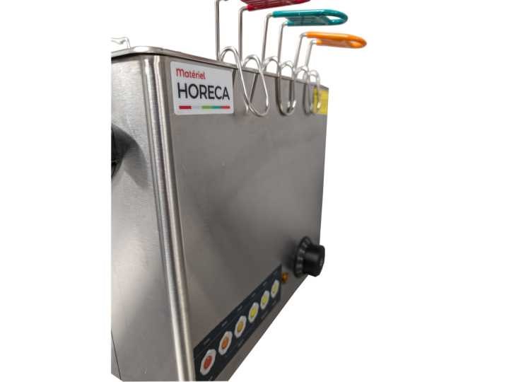 De x6 elektrische eierkookplaat van Matériel-Horeca is een elegant en hoogpresterende apparaat dat eierkoken revolutioneert en perfecte resultaten garandeert elke keer dat je het gebruikt. Deze kookplaat kan tot zes eieren tegelijk bakken en zorgt voor een gelijkmatige kook dankzij de speciale manden. Het hoogwaardige roestvrijstalen ontwerp combineert duurzaamheid met moderne esthetiek, terwijl onderhoud eenvoudig mogelijk is. Met 2600W vermogen warmt hij snel op en genereert hij een constante en gelijkmatige damp. Een gebruiksvriendelijke interface maakt het gebruiksgemakkelijk, en de automatische uitschakeling zorgt voor zorgeloos koken. Met compacte afmetingen van 375 x 230 x 300 mm past deze kookplaat perfect in elke keuken. Non Merk: Matériel Horeca Type: Cuiseur à œuf électrique x6 Totale afmeting L: 37cm Totale afmeting Breedte: 23cm Totale afmeting Hoogte: 30cm Materiaal: Edelstaal Rvs: true Regelbare thermostaat: true Aansluiting: 220-240V