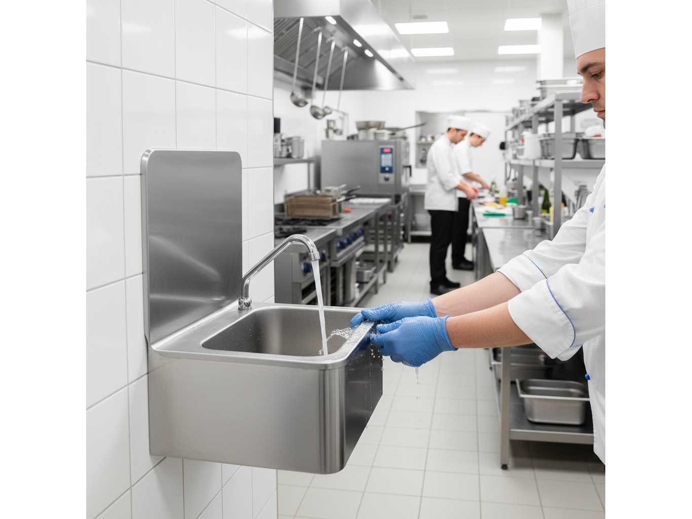 Horeca-apparatuur - aan de muur gemonteerde roestvrijstalen wasbak