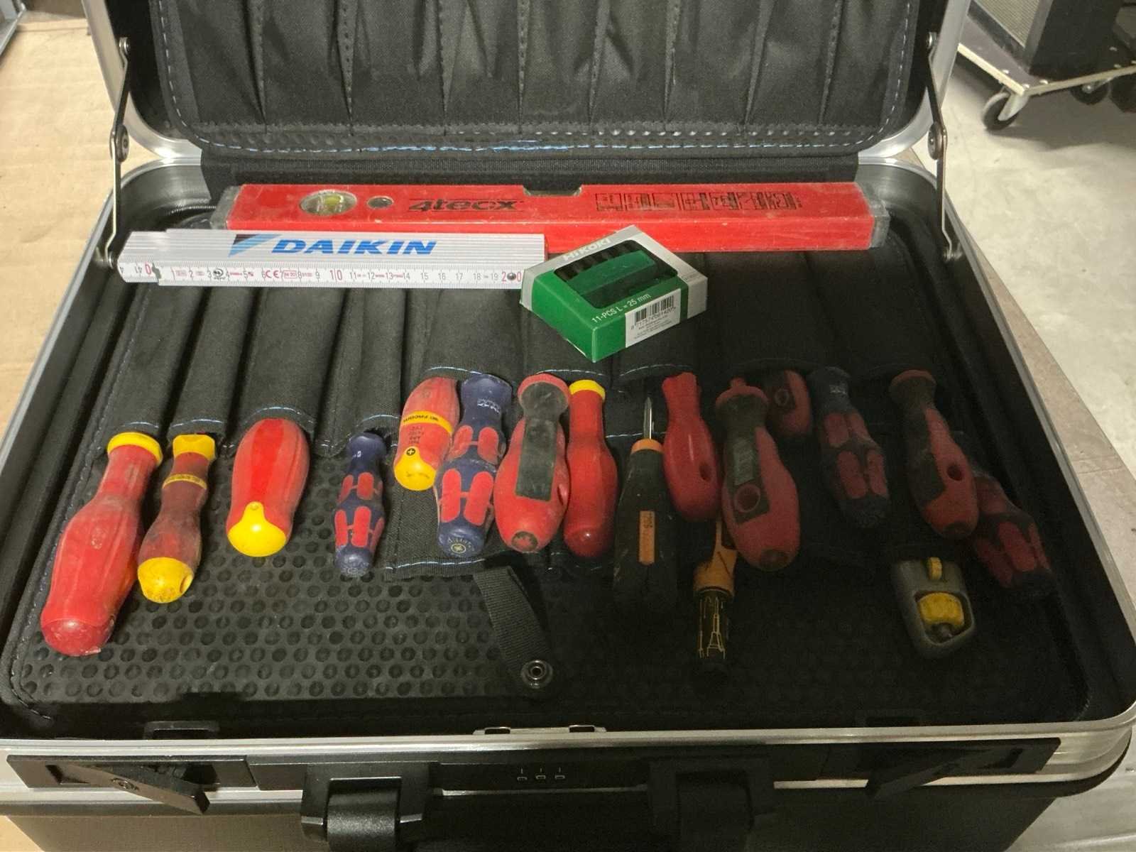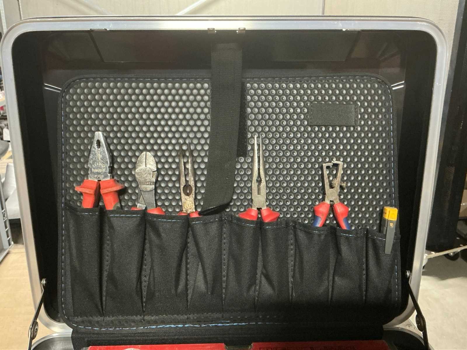 Inhoudende partij divers handgereedschap waaronder FACOM, HAUPA en STROXX, Waaronder schroevendraaiers, tangen, dopsleutelset, enige boren en enige steek- en ringsleutels No Merk: Stroxx Type: Verrijdbare Kunststof: true Met inhoud: true