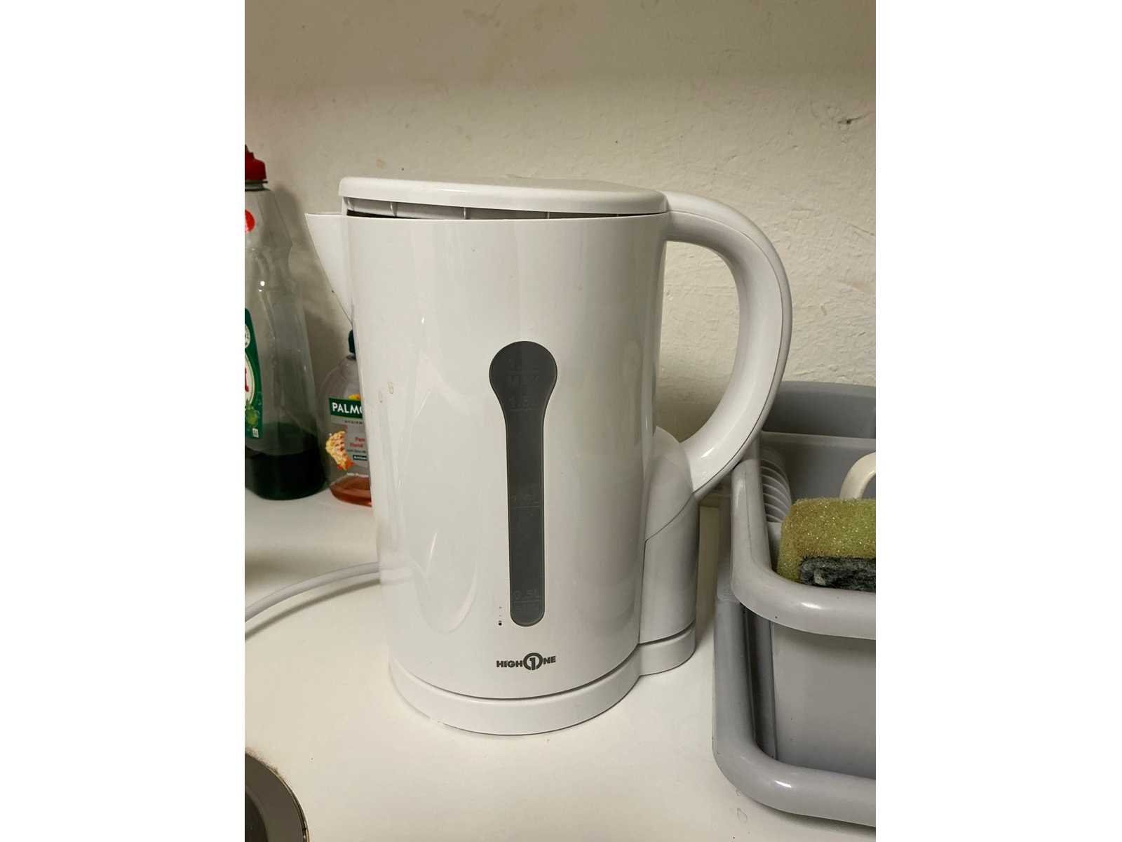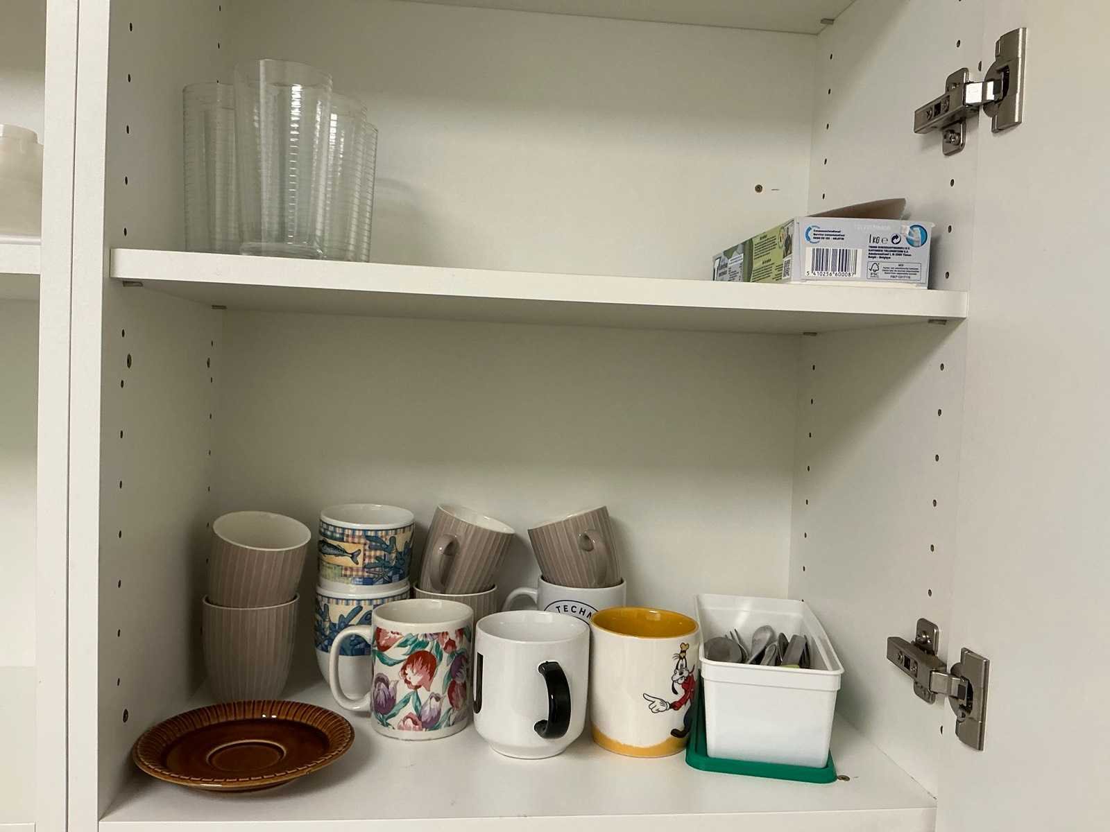 Volledige inhoud van keuken waaronder bestaande uit: 1 koffie–/espresso apparaat DELONGHI Magnifica S, 1 koffiezetapparaat KRUPS Dolce Gusto, 1 Airfryer DOMO, 1 RVS magnetron MENUMASTER COMMERCIAL, 1 houten bijzettafel voorzien van metalen onderstel 70 x 60cm, Compleet met kleine partij, diverse mokken een waterkoker en enige diverse onderhoudsproducten, Uitegezonderd genummerde kavels en eigendomsvoorbehoud, Afgifte volgens aanwijzing Nee