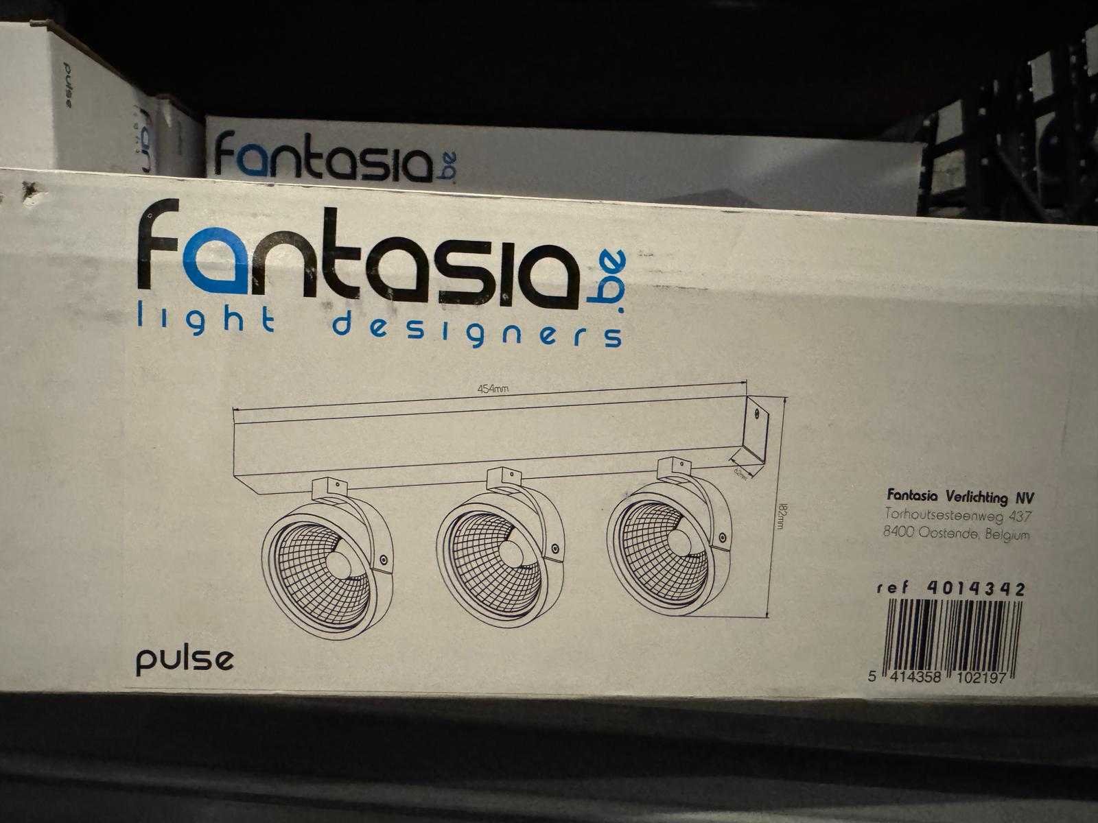Partij verlichting Fantasia: Nysit dubbel Zwart 3427102 2 stuks Pulse dubbel Zwart 4014346 2 stuks Pulse triple Wit 4014342 1 stuks Alles nieuw in verpakking 5 stuks in totaal No Merk: Fantasia light designers