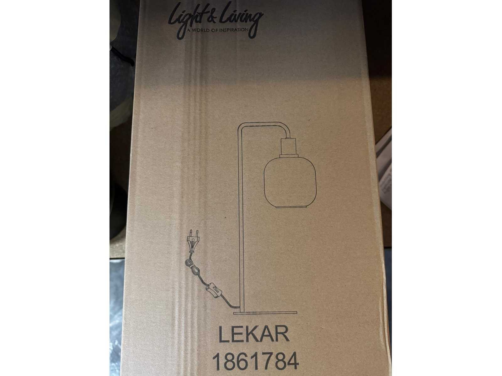 2 Tafellampen Light & Living - Lekar nieuw in verpakking No Merk: Light & Living Model: Lekar Fitting: E27 Wattage: 25W Kleur: goud + smoked glass Gewicht: 2100kg Lengte: 26cm Breedte: 20cm Hoogte: 60cm Materiaal: Metaal