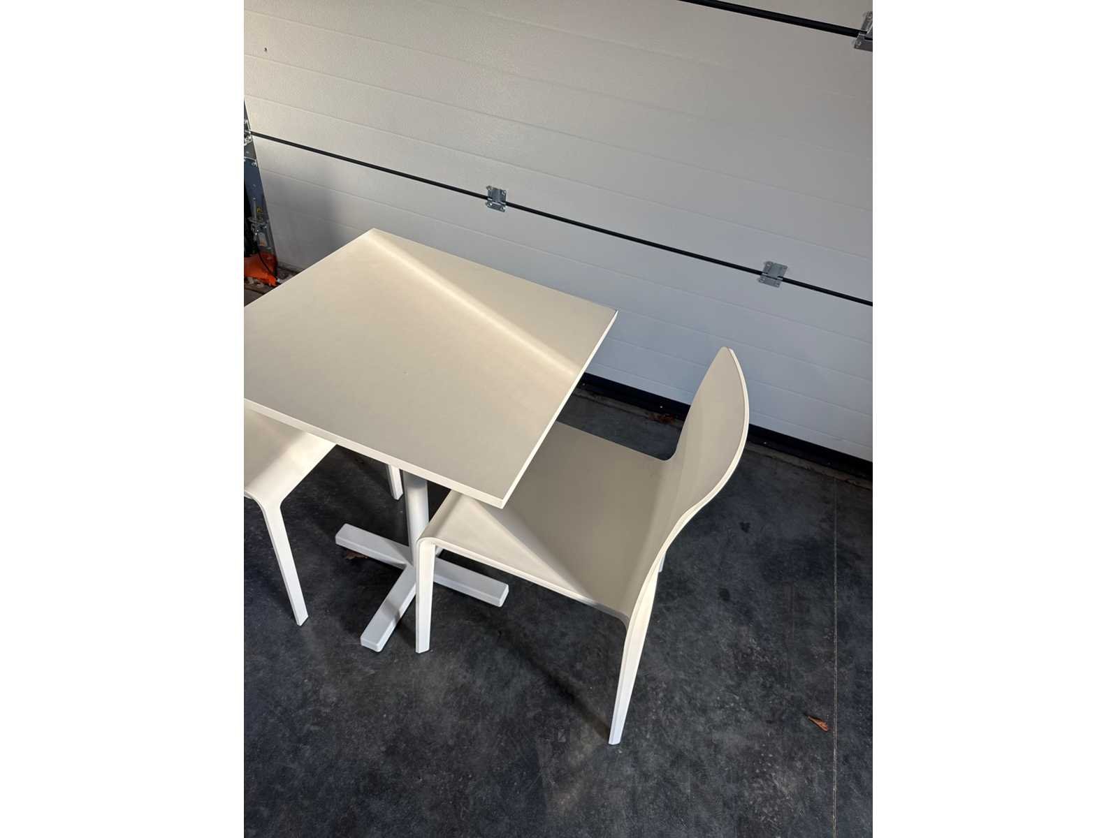 1 tafel met 2 stoelen Nieuw in doos No Merk: Pedrali Model: Sedia volt Kleur: Wit