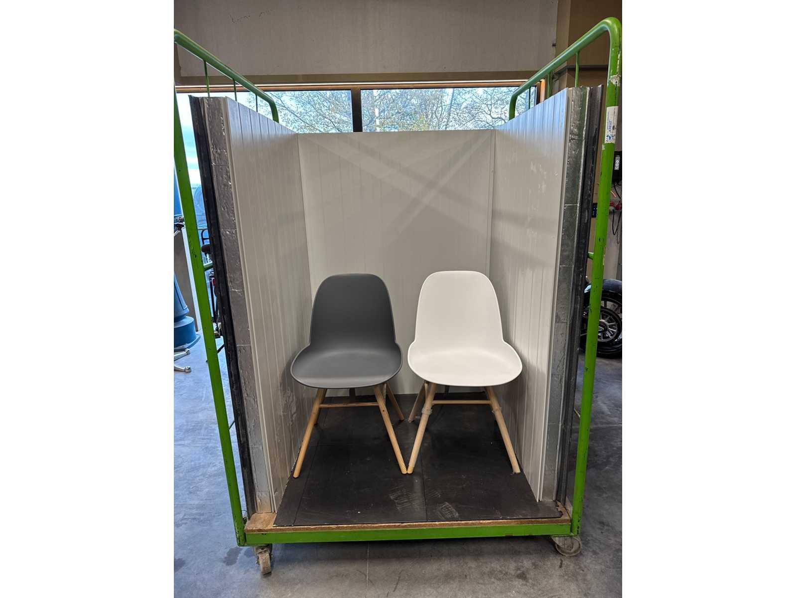 3 stoelen Chair albert kuip grijs 2 stuks Chair albert kuip wit 1 stuk No Merk: Zuiver Model: Albert Kuip Kleur: Grijs + wit