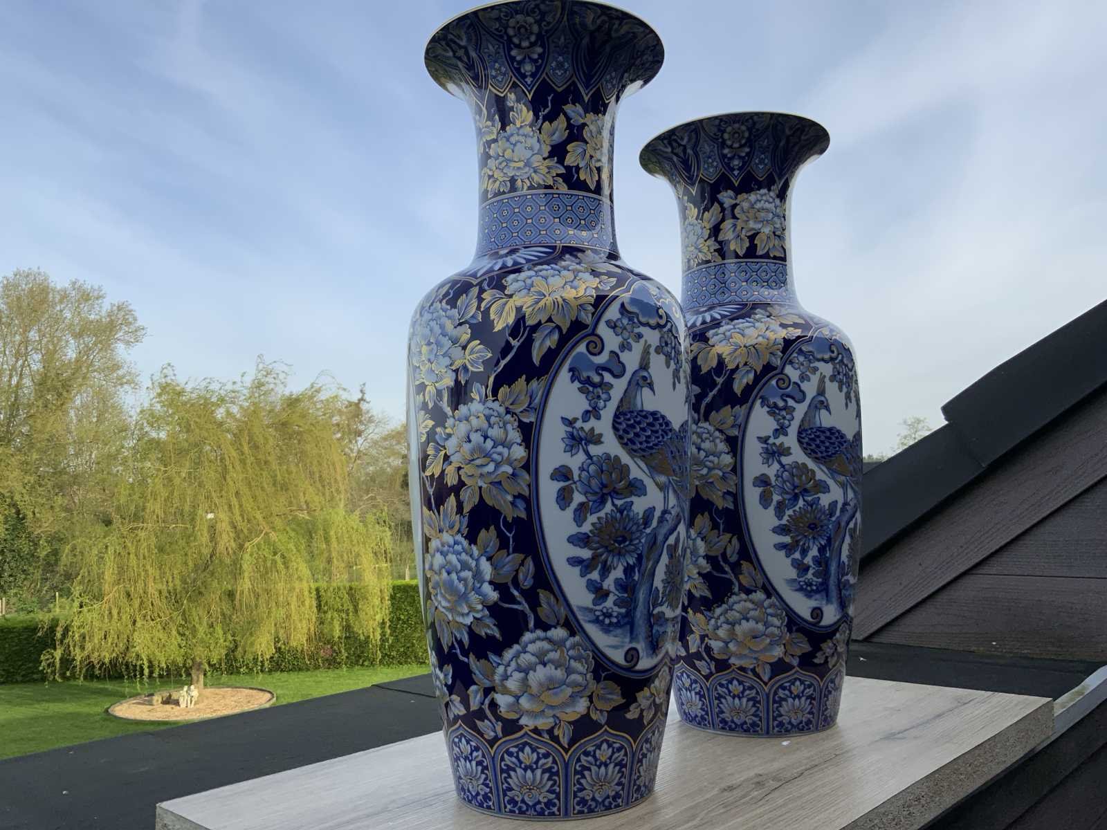 Set porselein Designer Nossek. Echt kobalt. 2 identieke vazen van 67cm hoog No Land: Duitsland Handtekening/stempel: true Hoogte: 67cm