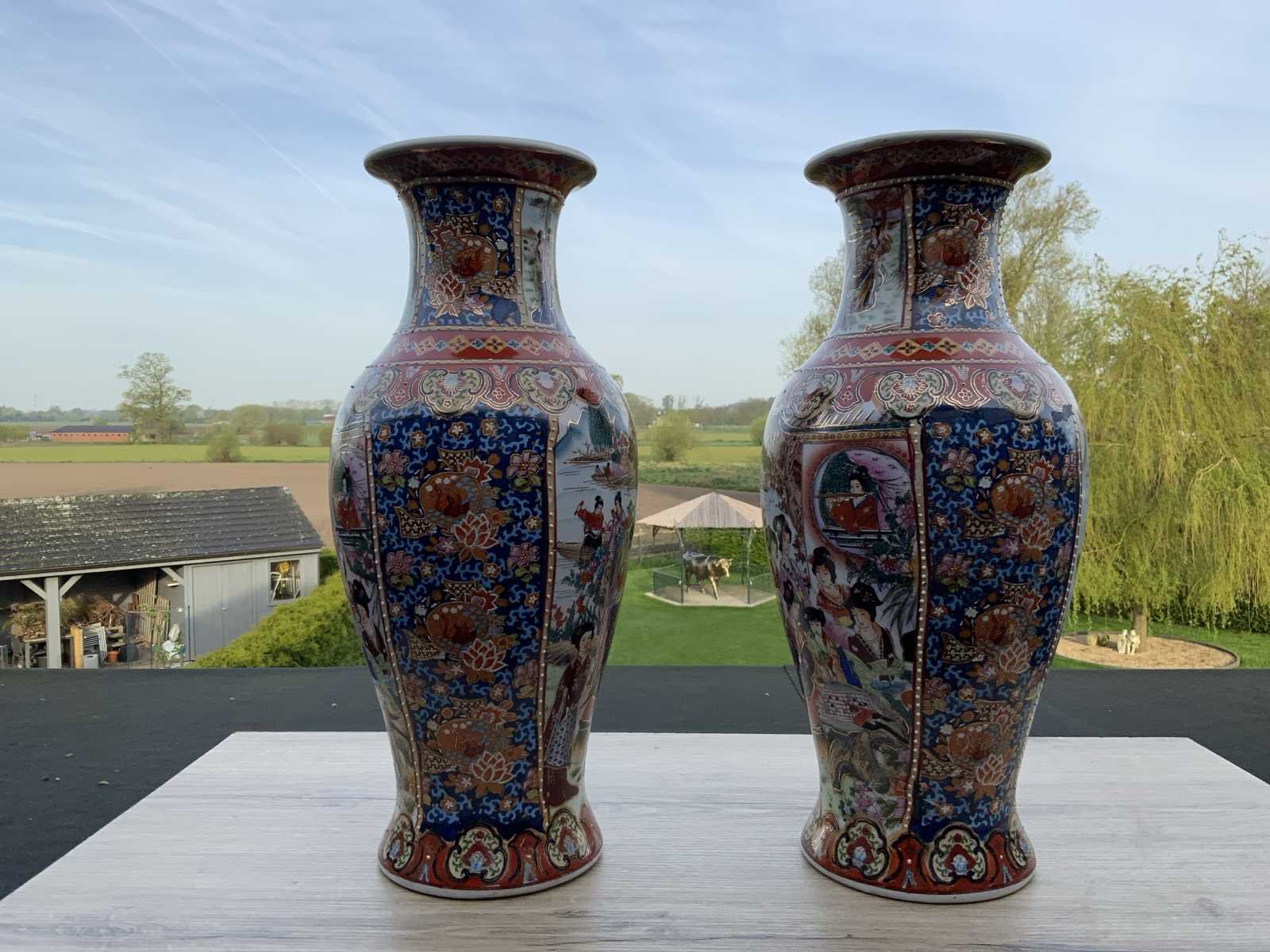 Set chinees porselein. 2 identieke vazen van 45cm hoog No Land: China Handtekening/stempel: true Hoogte: 45cm