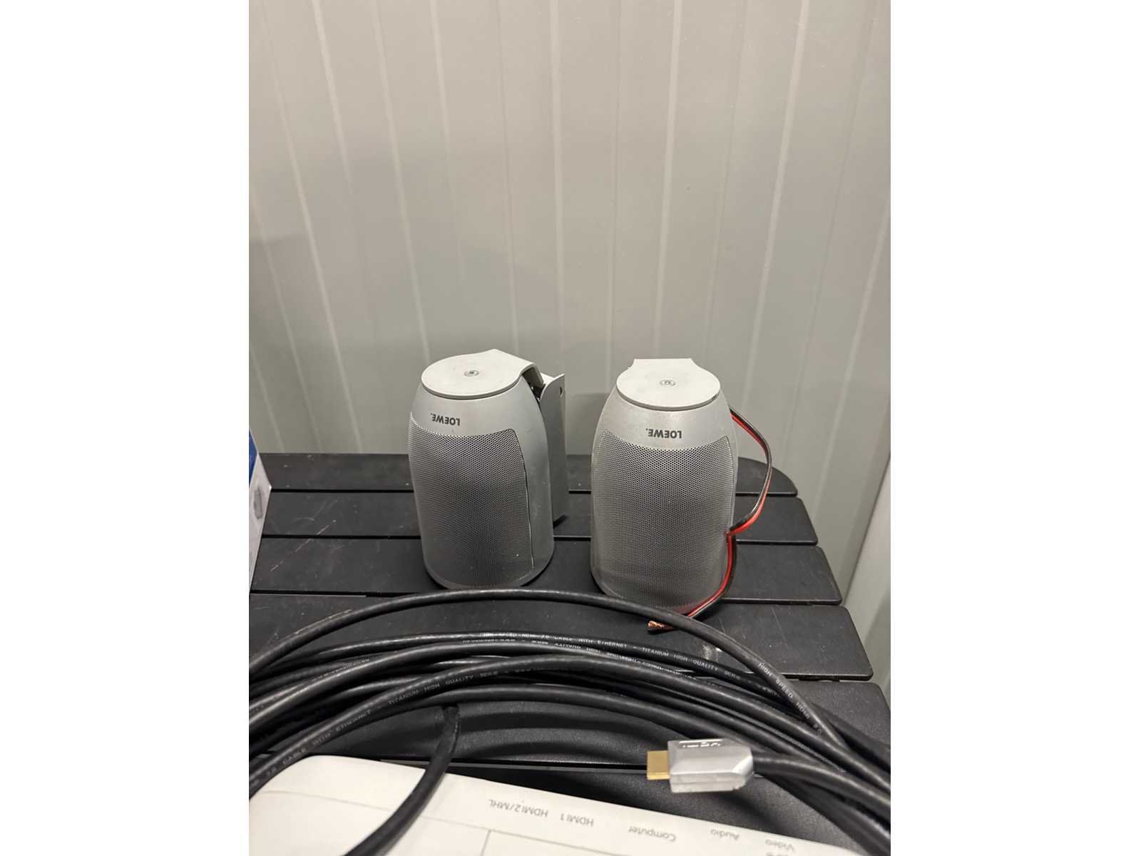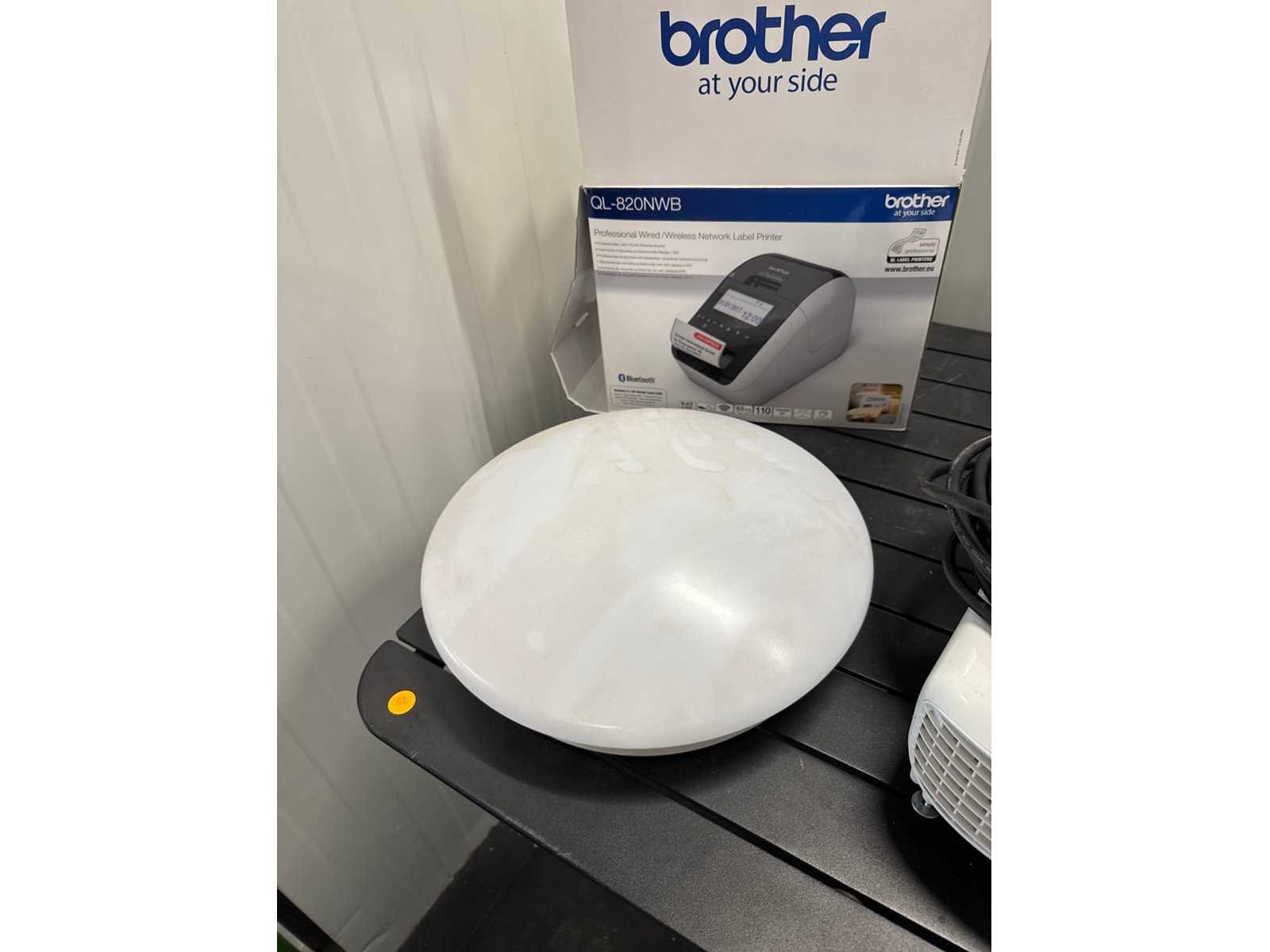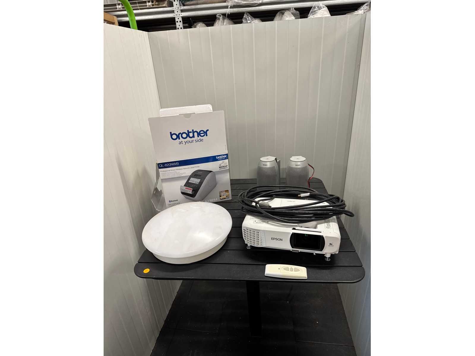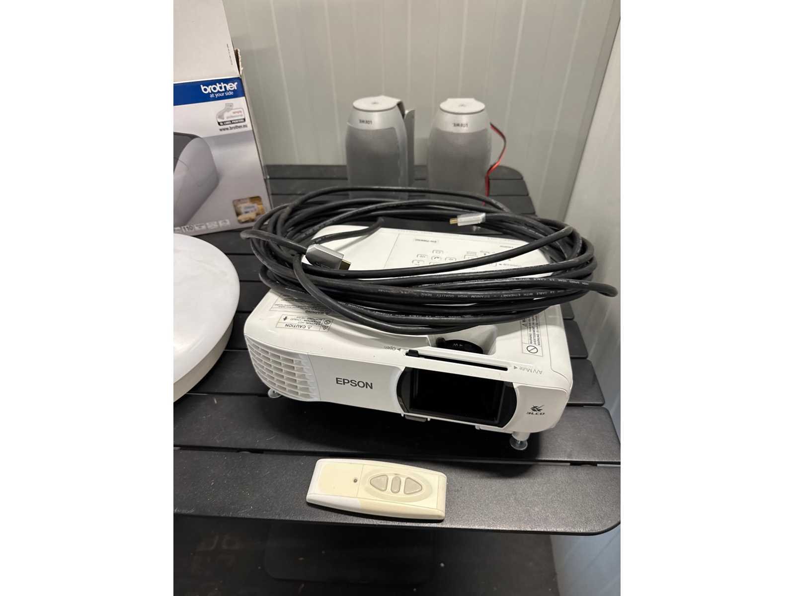 Beamer + bijhorend uitroldoek, boxen, printertje en verlichting. No