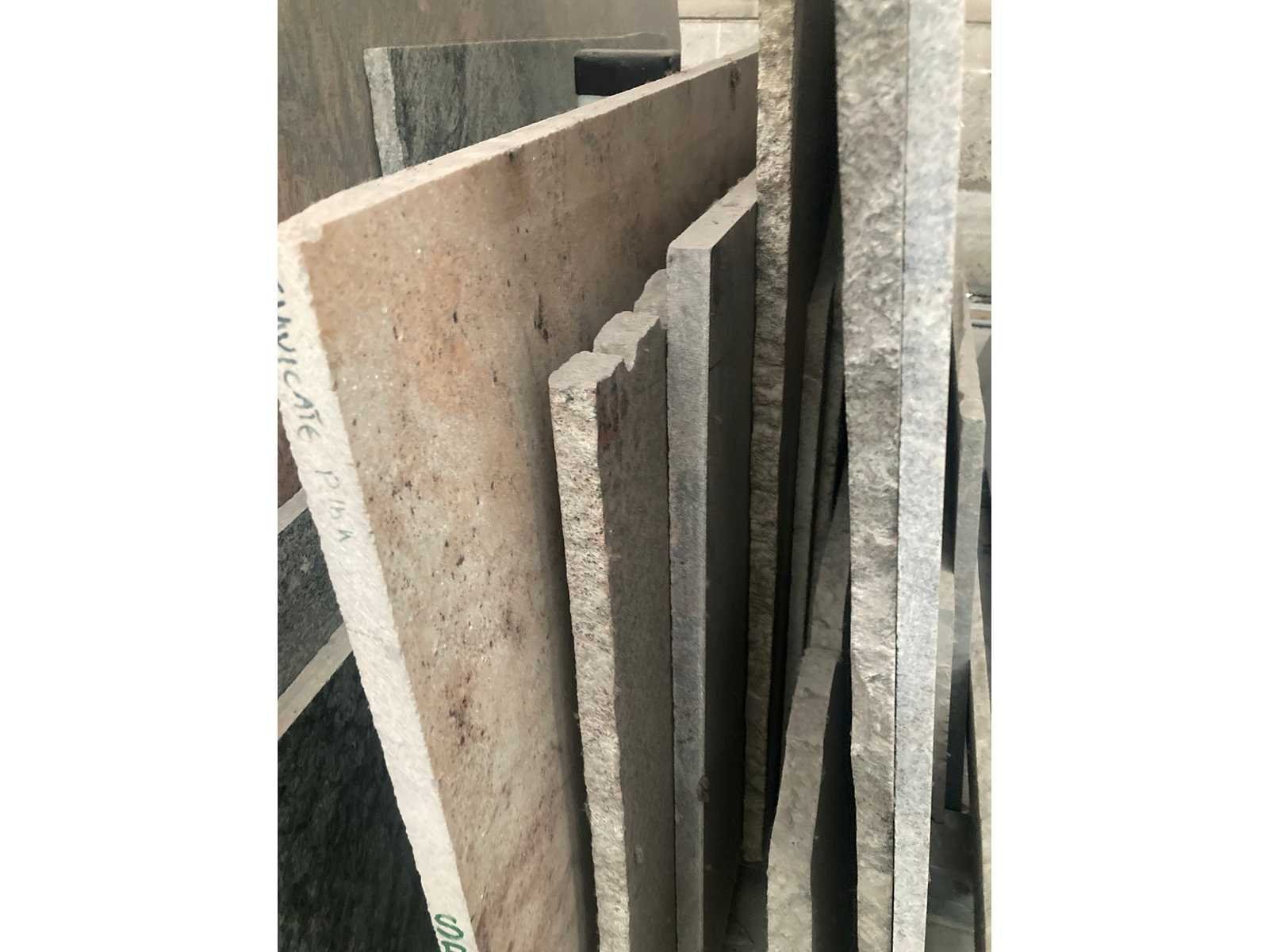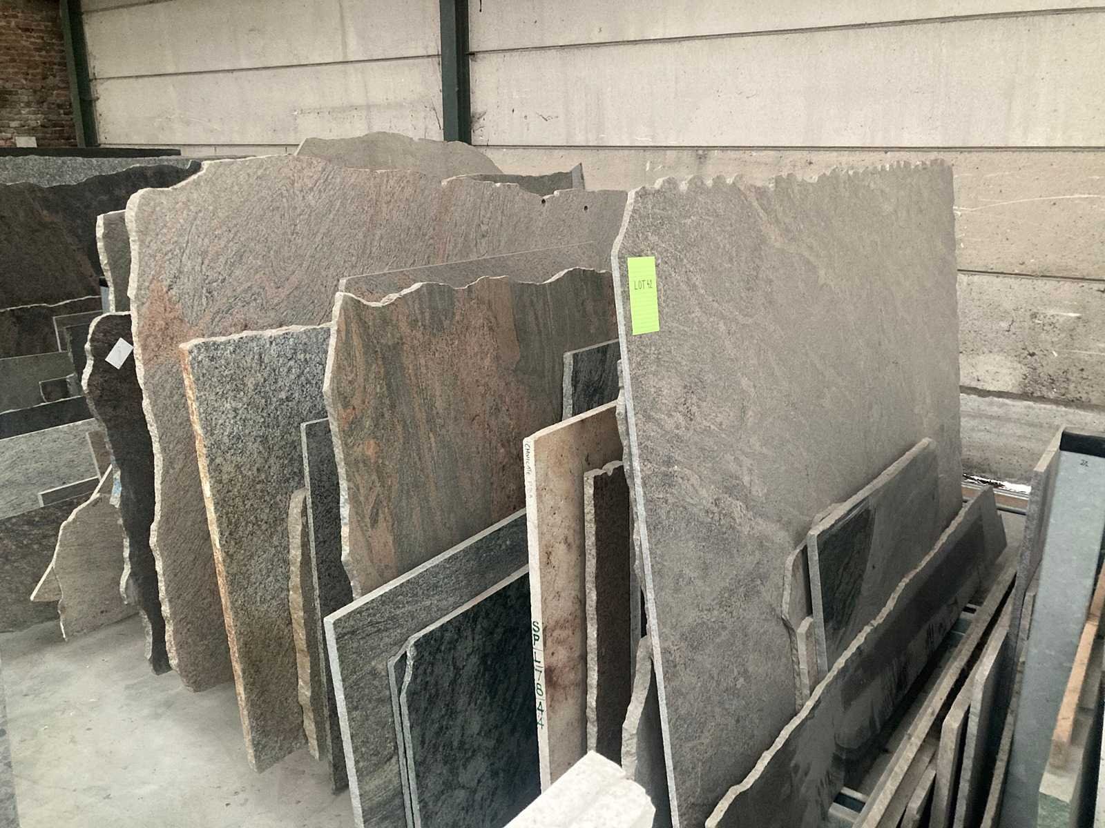 Lot gekleurde granieten (enkel materiaal, niet het metalen rek) Nee Gewicht: 4500kg Lengte: 300cm Hoogte: 200cm Leveringsvoorwaarden: Niet gefundeerd - onverpakt