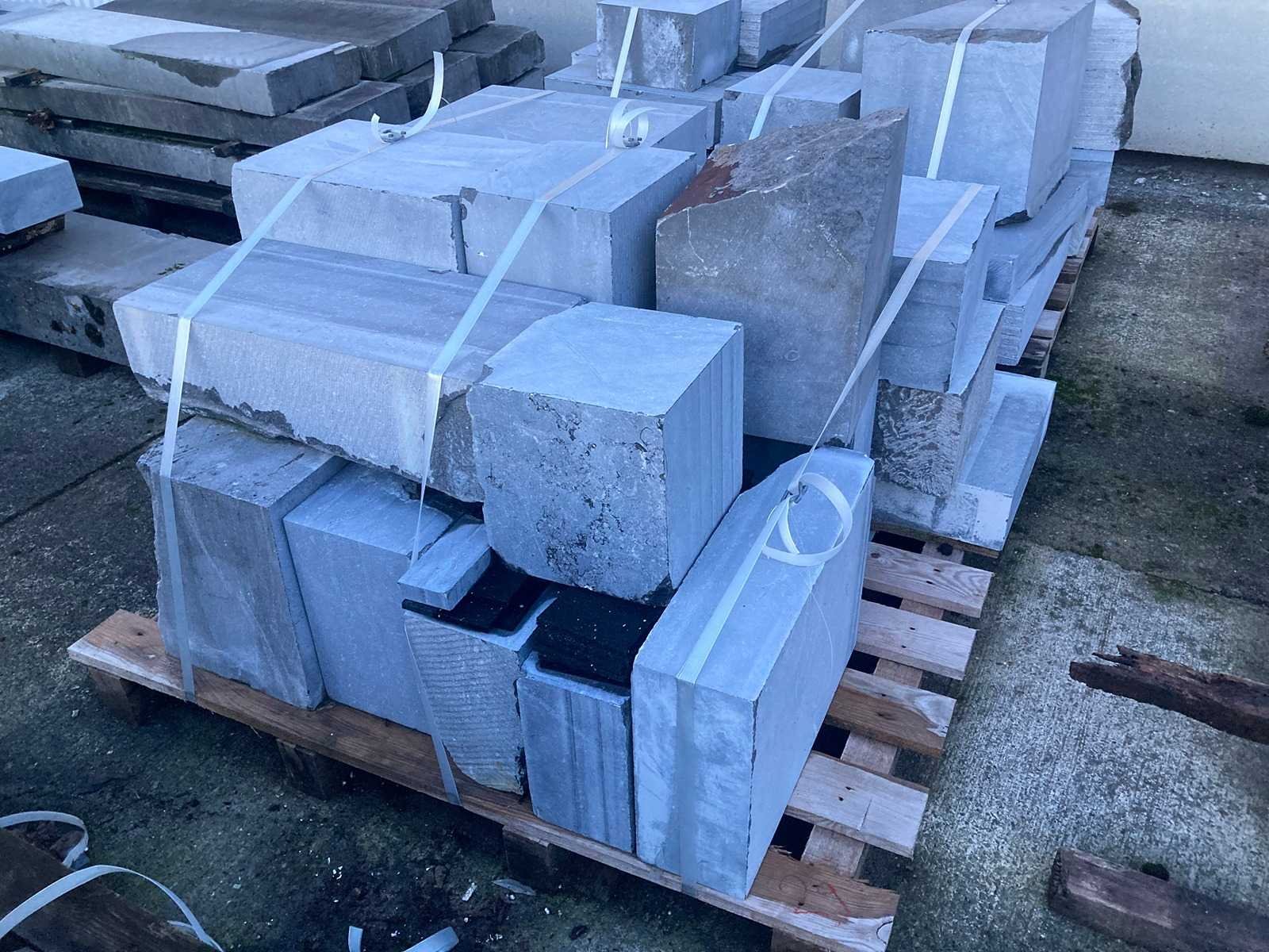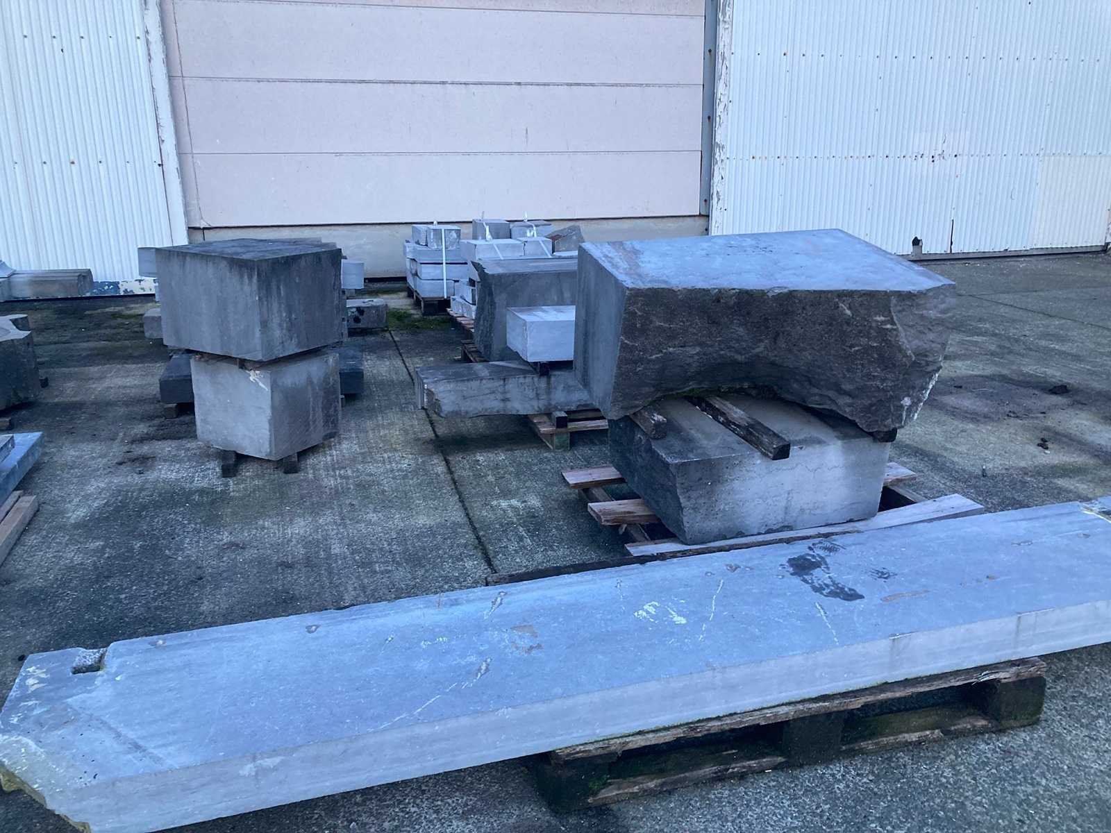 Verschillende blokken Belgische blauwe steen: totaal 11 paletten Nee Gewicht: 2500kg Leveringsvoorwaarden: Niet gefundeerd - onverpakt