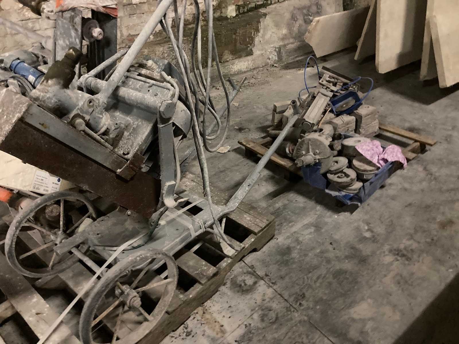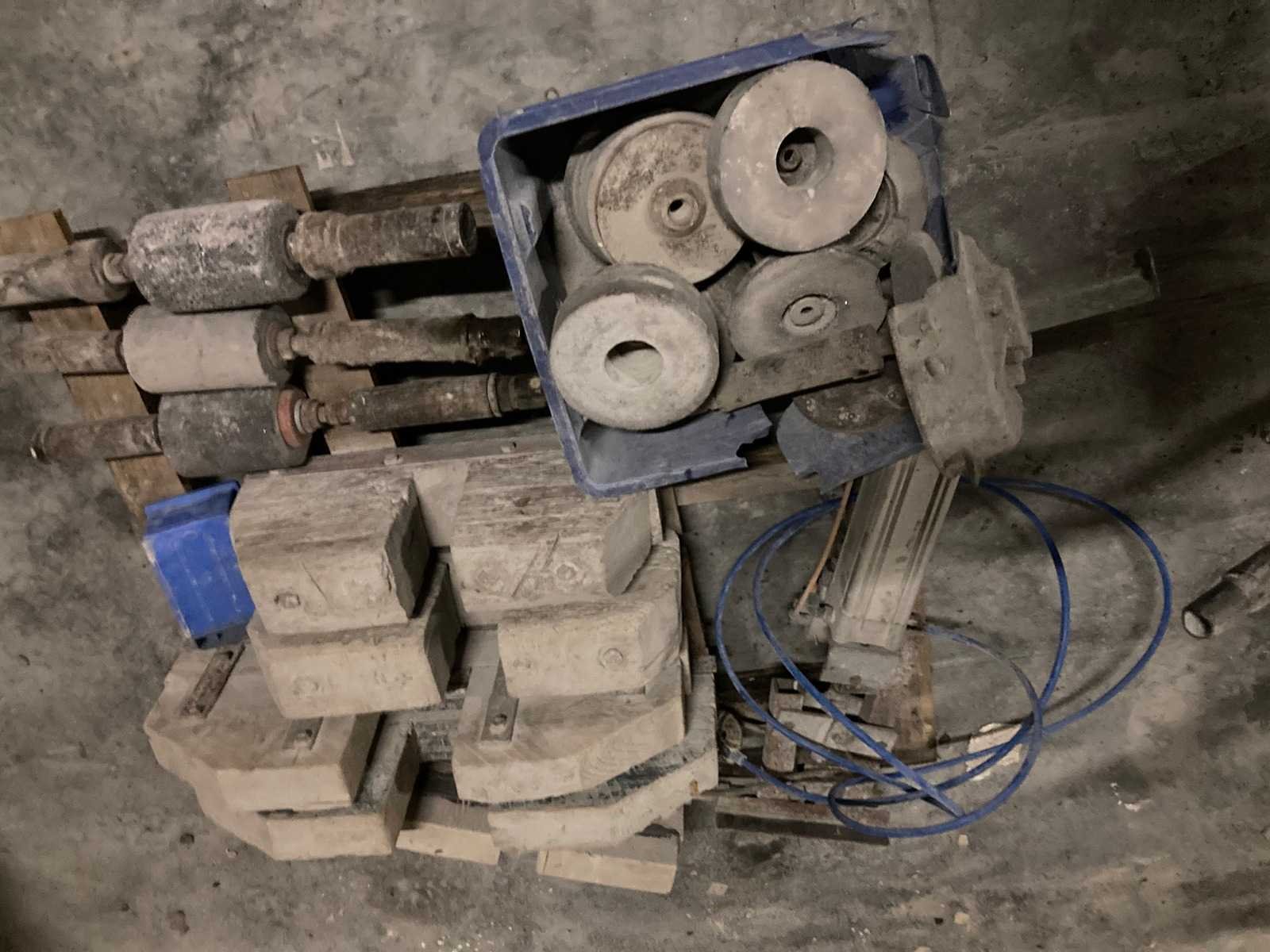 Schuurmachines voor bewerken van natuursteen. 6 machines en slijpstenen met rolstenen en houders. Nee Leveringsvoorwaarden: Niet gefundeerd - onverpakt