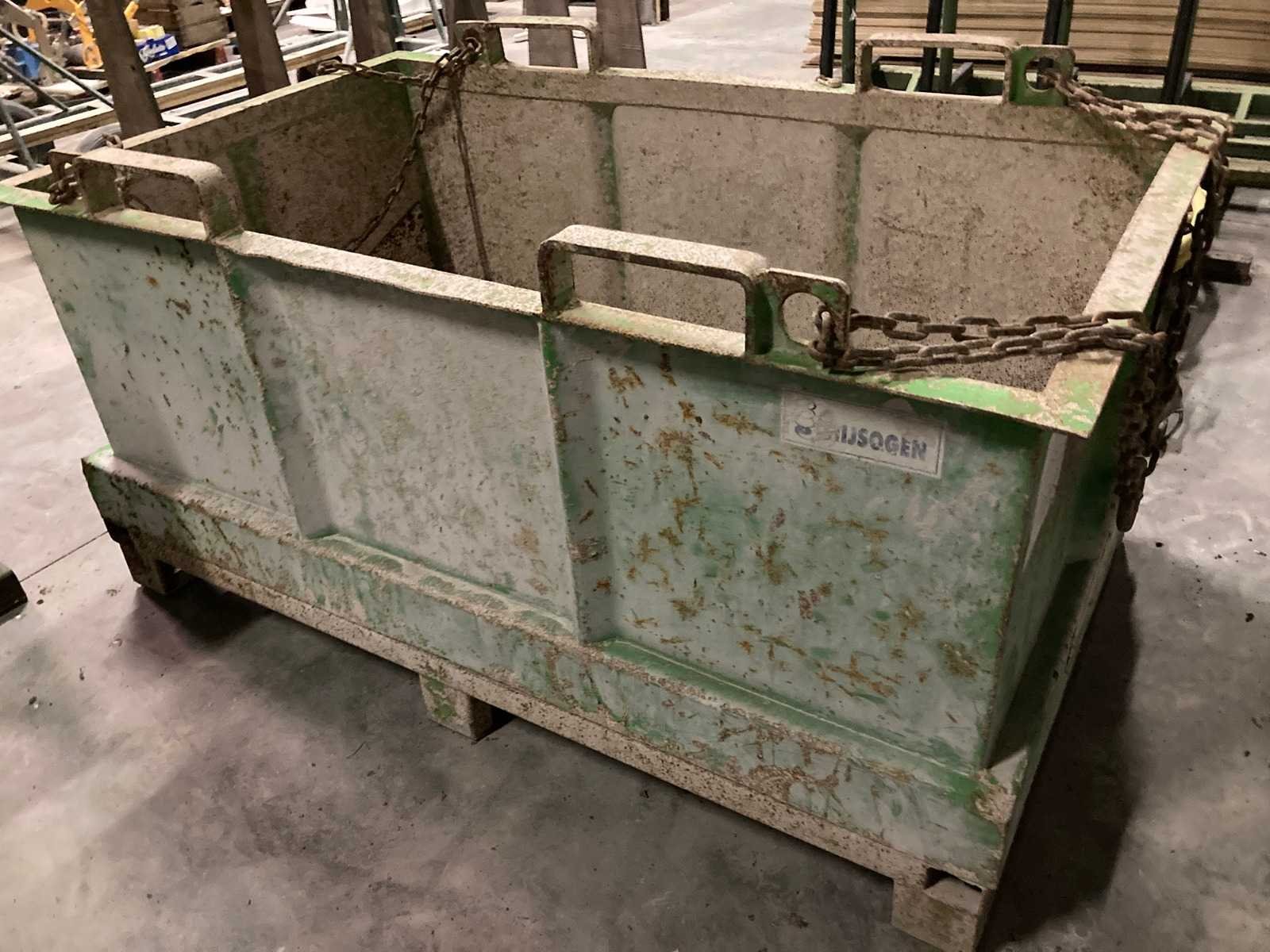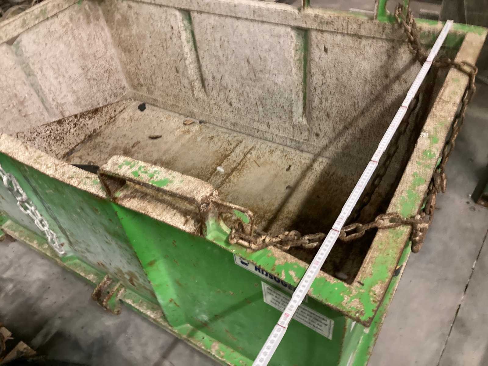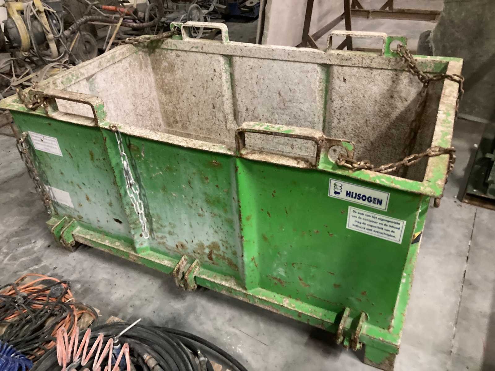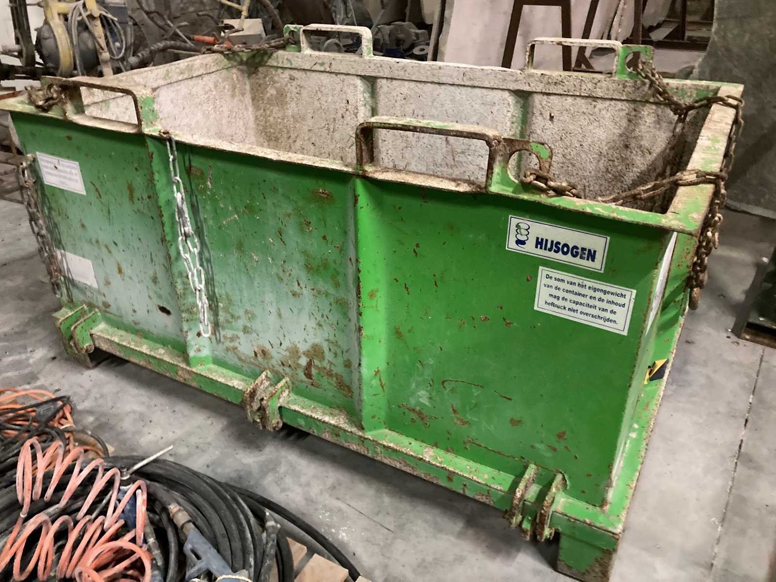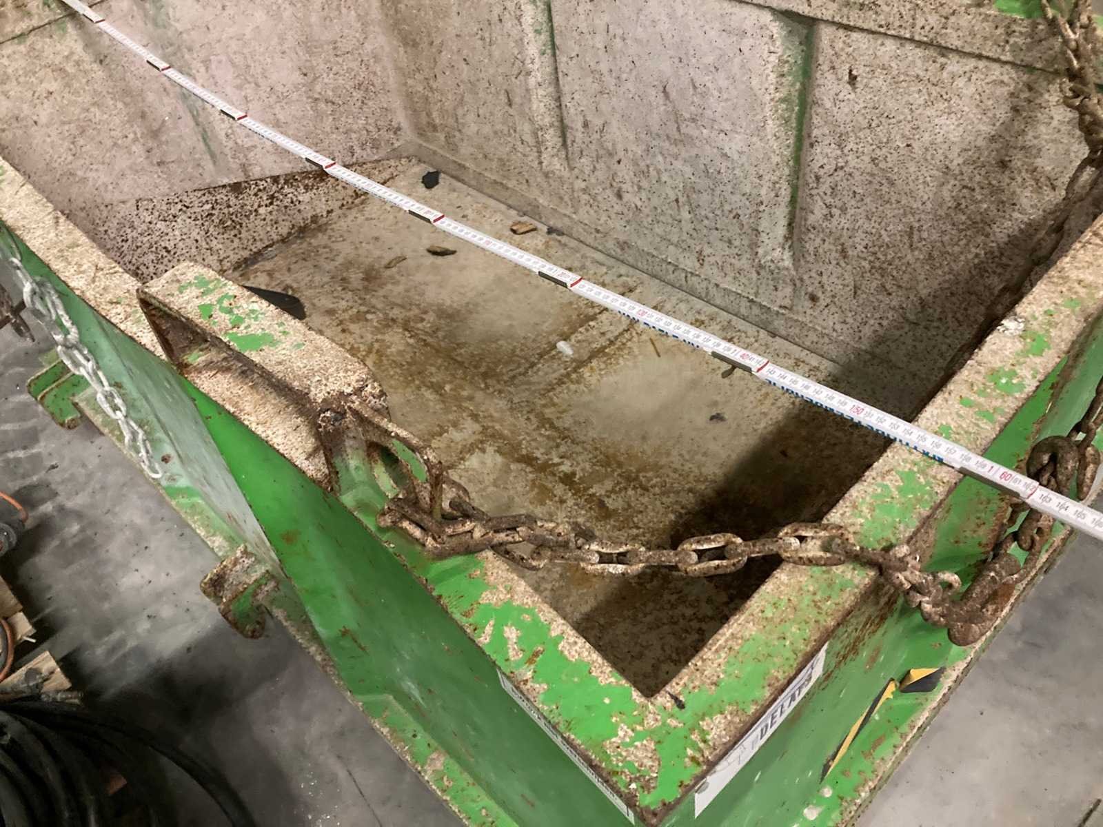 Zware, sterke afvalbak voor steenafval. Transport met heftruck of rolbrug. Klapt onderaan open om te bak te legen. Nee Leveringsvoorwaarden: Niet gefundeerd - onverpakt