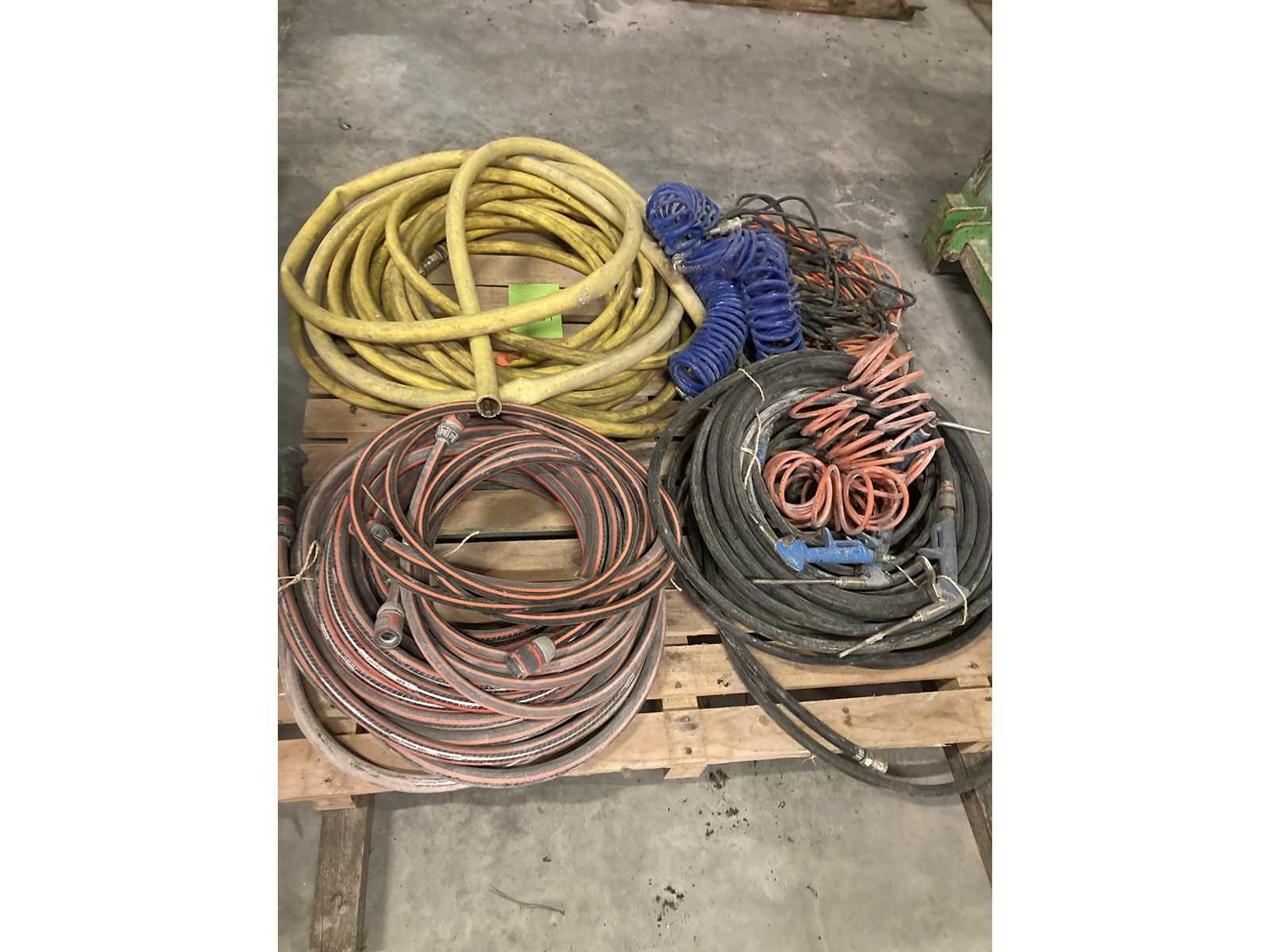 Palet met verschillende slangen voor luchtdruk en water Nee