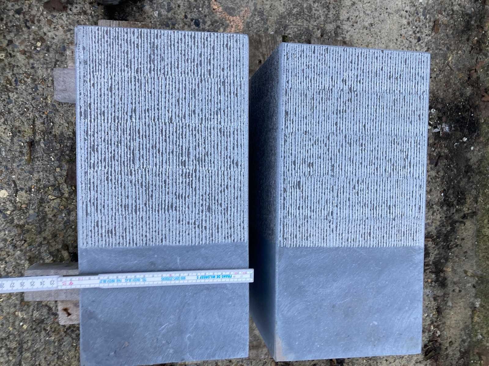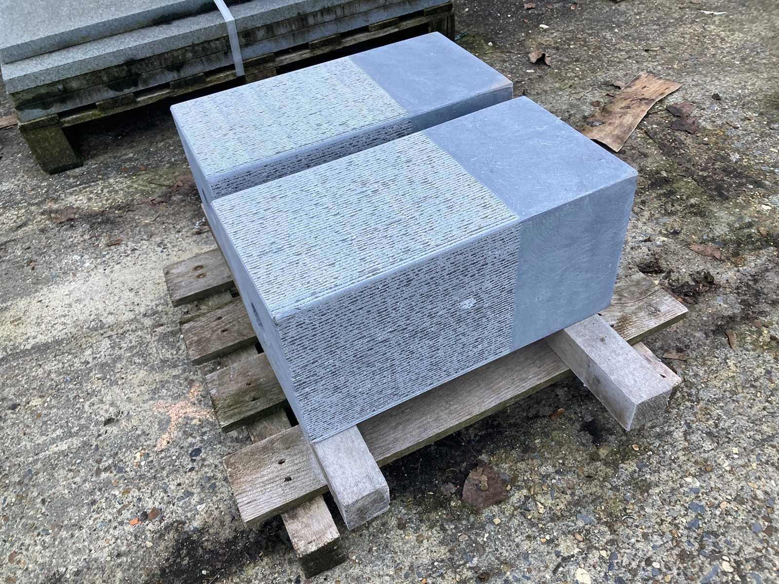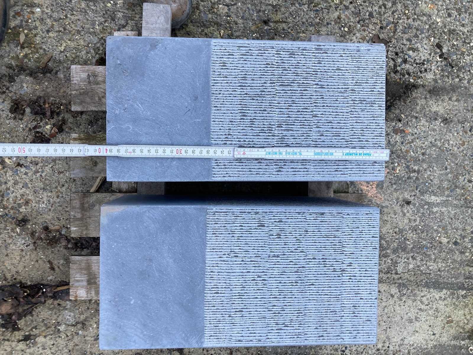2 massieve sokkels in belgische blauwe steen - handgekapt