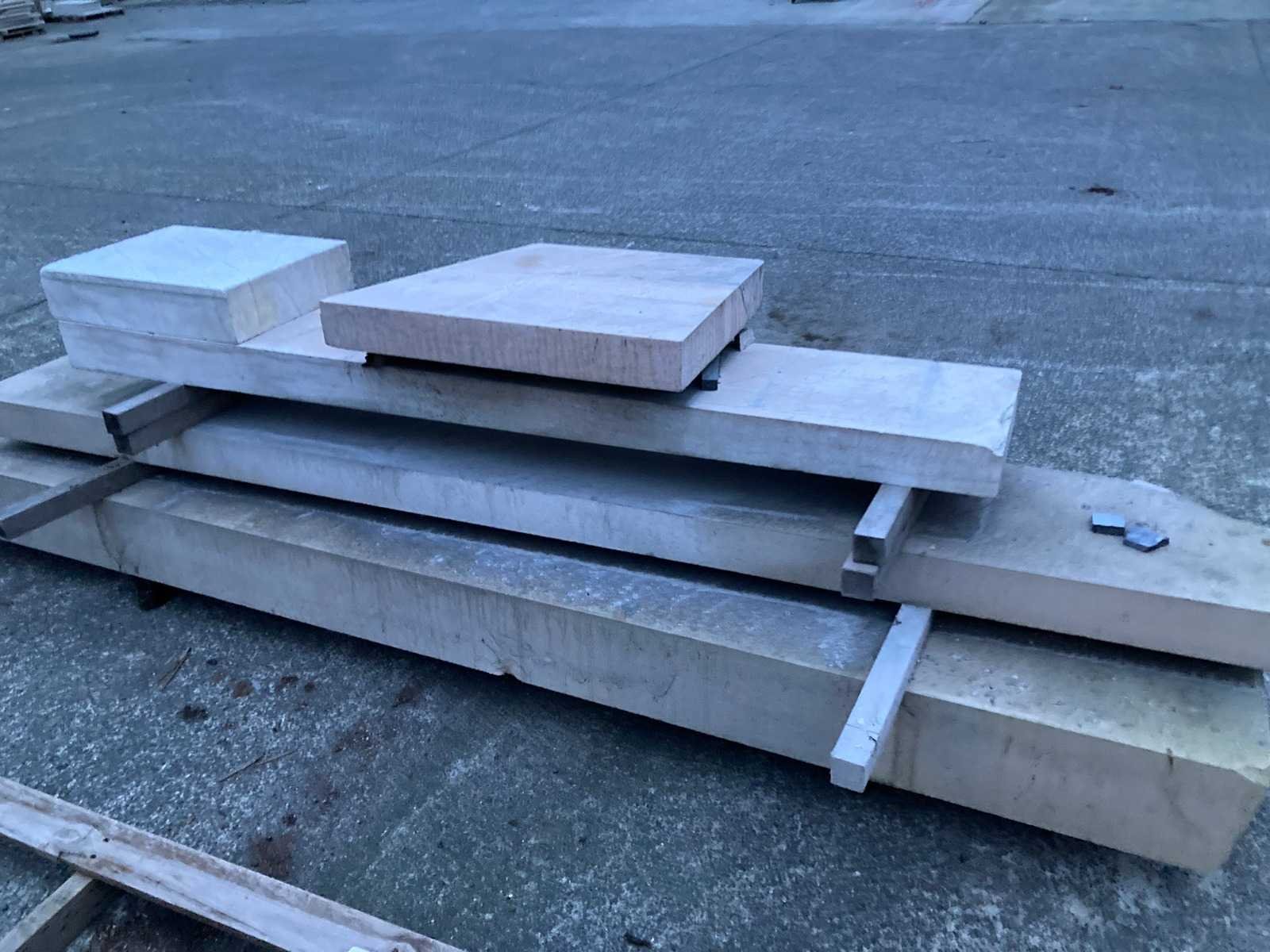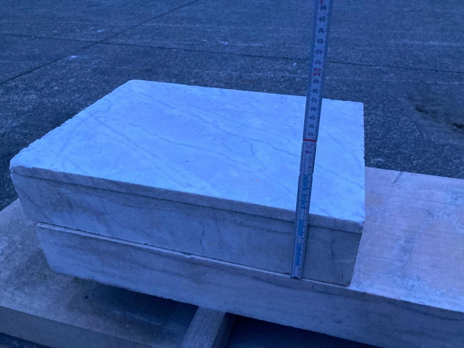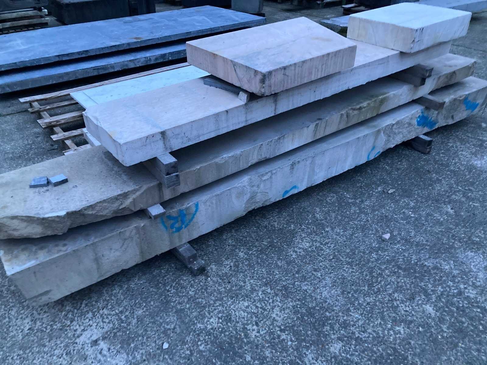 Plaat Bourgondische witsteen Massangis: 290 x 55 x 20cm en 270 x 40 x 10cm Platen Rosé Aurore: 200 x 34 x 8cm en 50 x 50 x 8cm en 50 x 40 x 12cm Nee Leveringsvoorwaarden: Niet gefundeerd - onverpakt