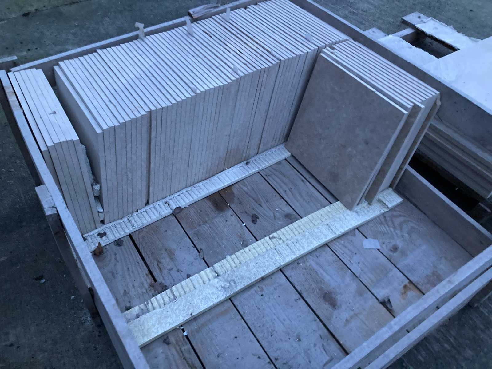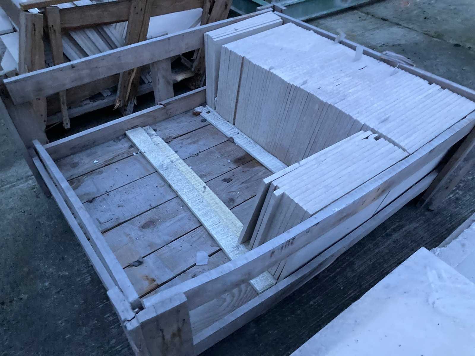 3 paletten bourgondische witsteen: Banen vrije lengte breedte 50cm tegels 40/40/1,5cm 13m² Nee Leveringsvoorwaarden: Niet gefundeerd - onverpakt