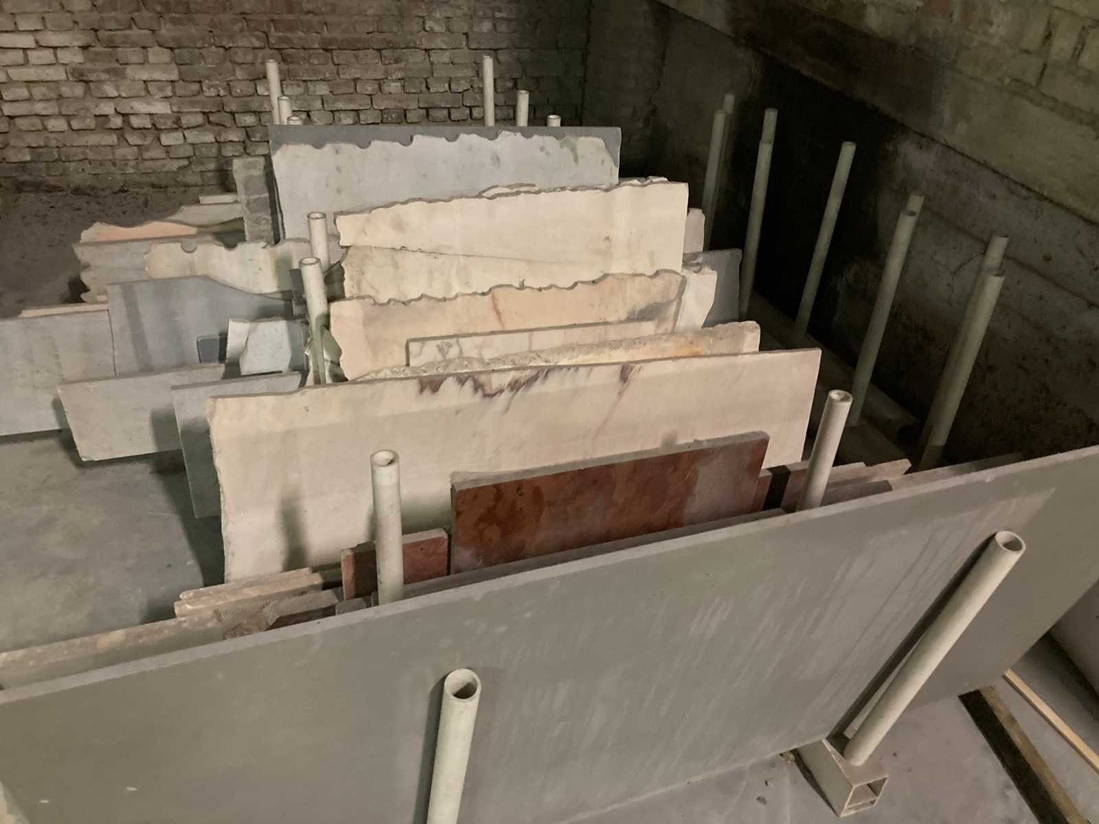 Rek kunststof met kleine platen marmer: Partij volledig mee te nemen: rekken + materiaal Nee Leveringsvoorwaarden: Niet gefundeerd - onverpakt