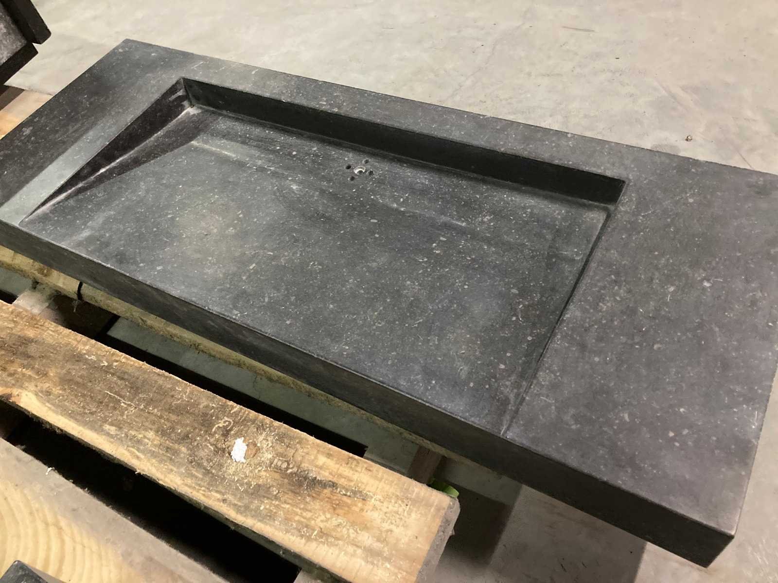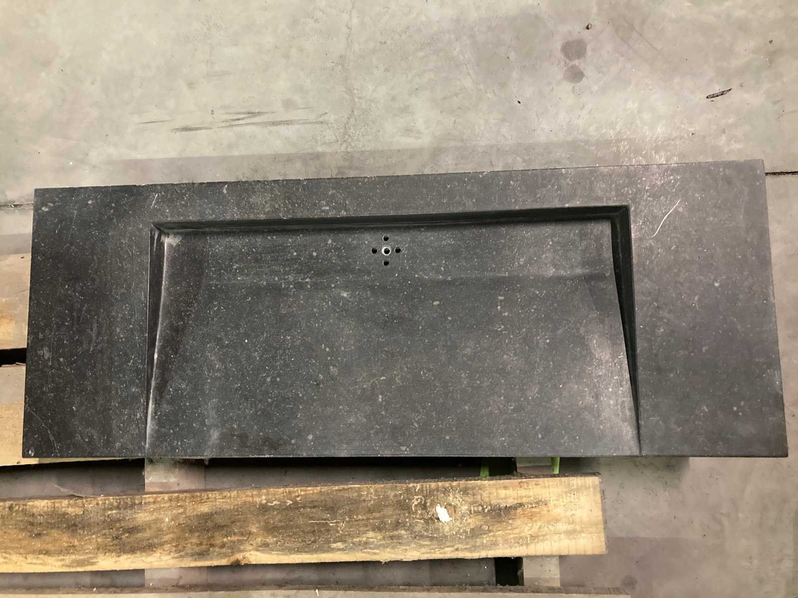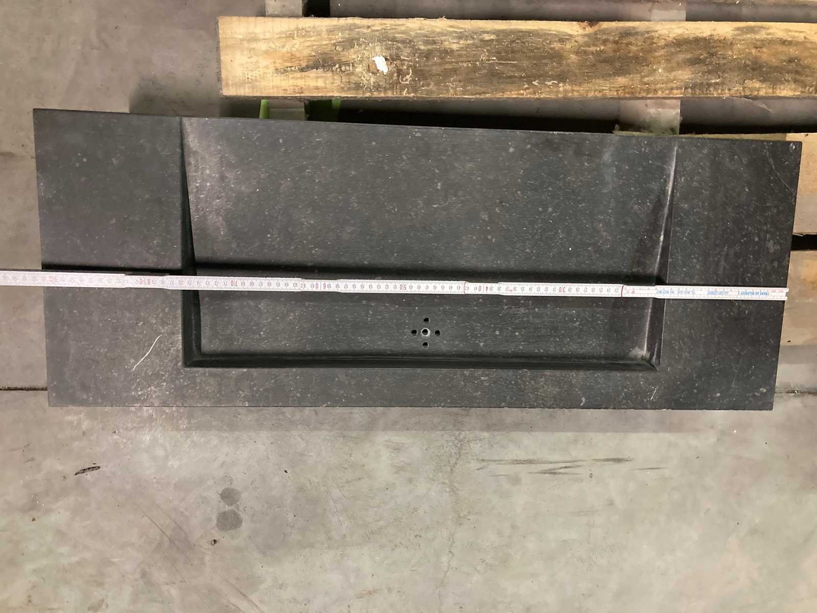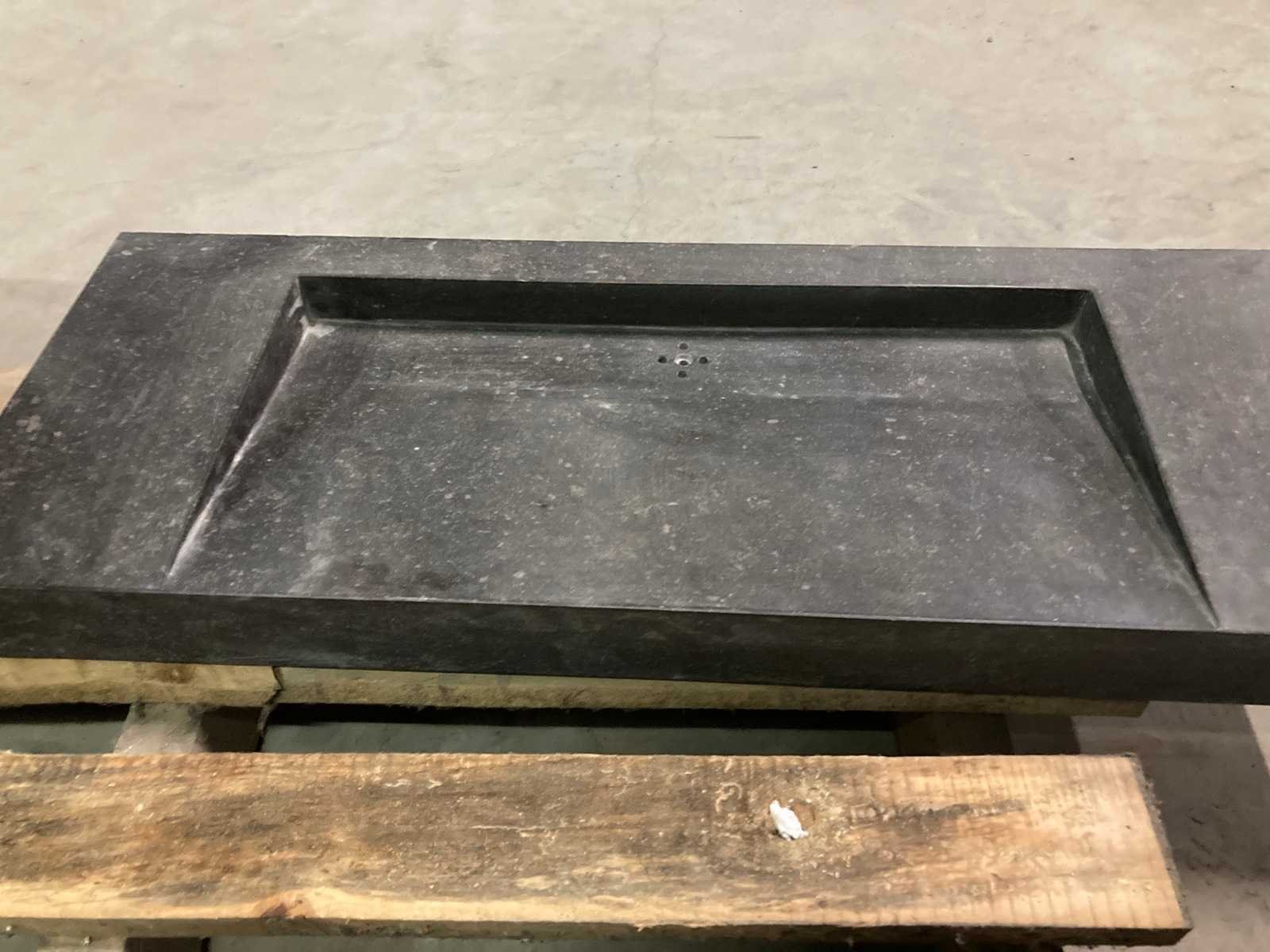 Massieve spoelbak in Belgische blauwe steen donker verzoet de hoek is hersteld: eventueel in te korten. Nee Leveringsvoorwaarden: Niet gefundeerd - onverpakt