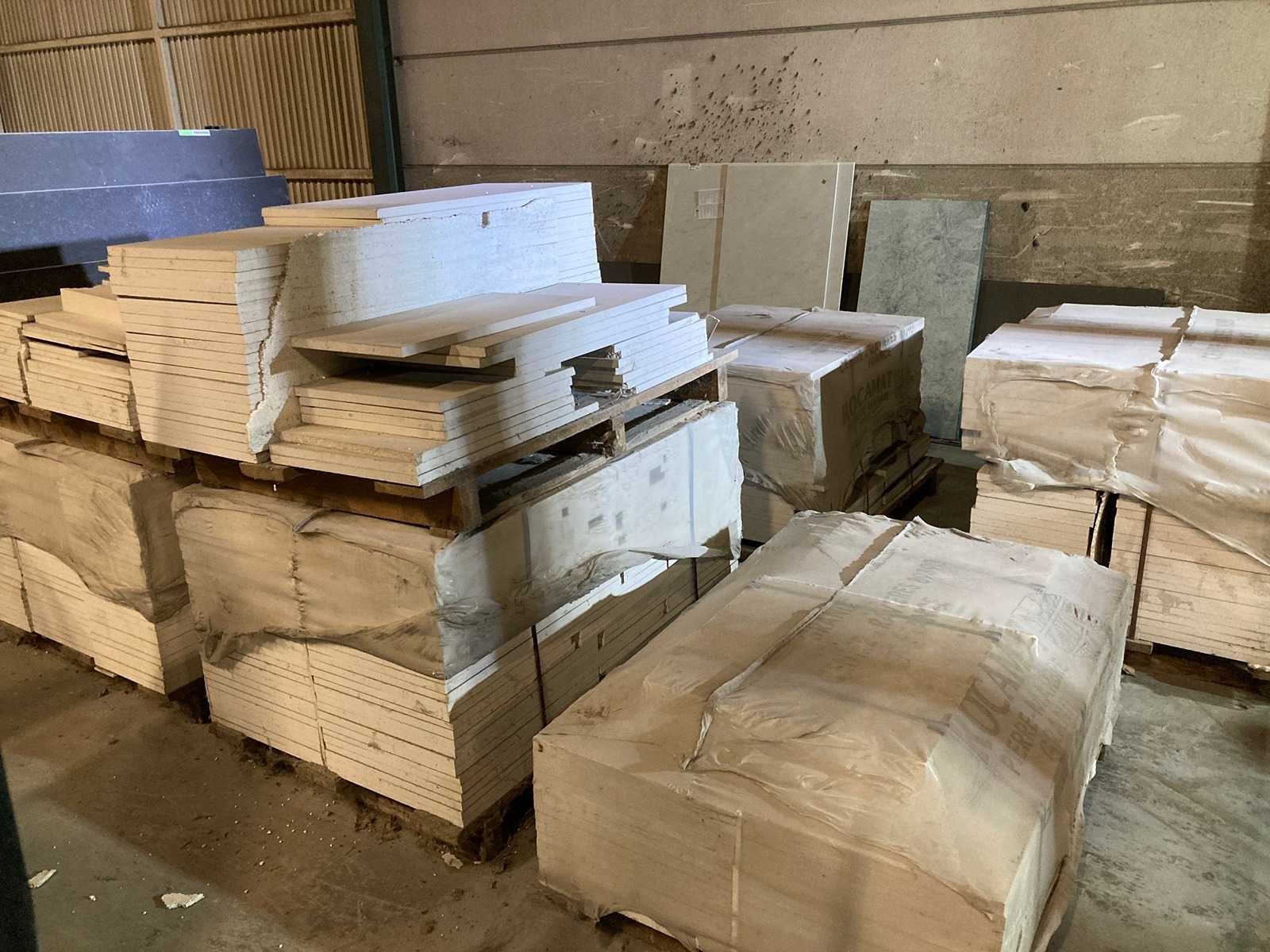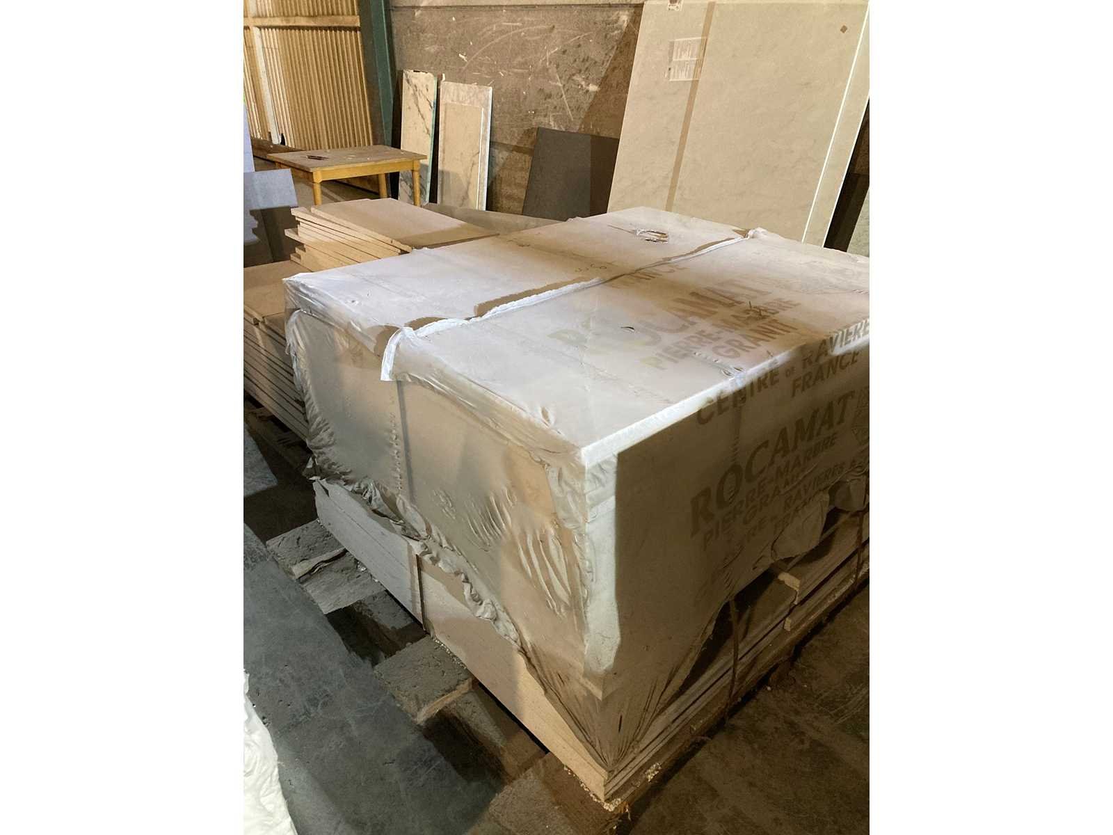 Tegels Lacome Dur Claire: Tegels in banen van 50, 40 en 30 breed. Totaal 8 paletten en 120m² Nee Leveringsvoorwaarden: Niet gefundeerd - onverpakt