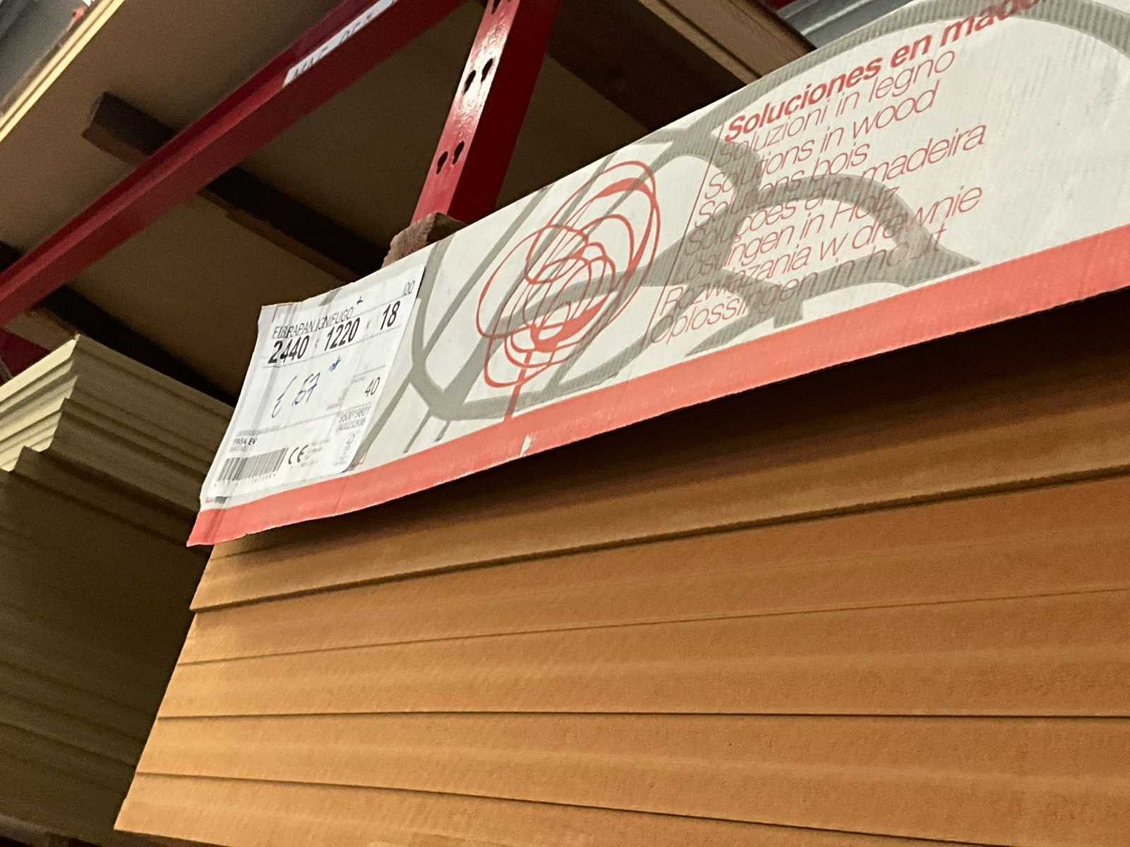 = 1 pak. Nee Merk: Finsa Lengte: 244cm Breedte: 122cm Hoogte: 1.8cm Materiaal: Samengeperste houtvezelplaten