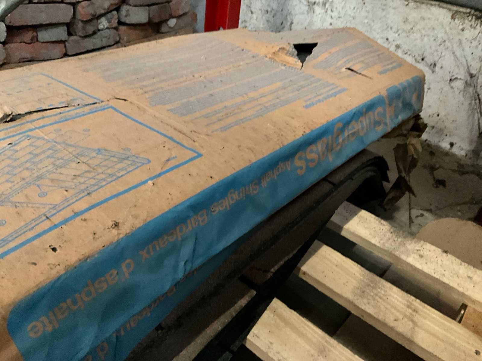 Asfalt shingels, elk pak voor 3 m2, compleet met enige diverse restanten. Met een werkbreedte van 32,3 cm en telkens voor een lengte van 100 cm. Nee Merk: Superglass