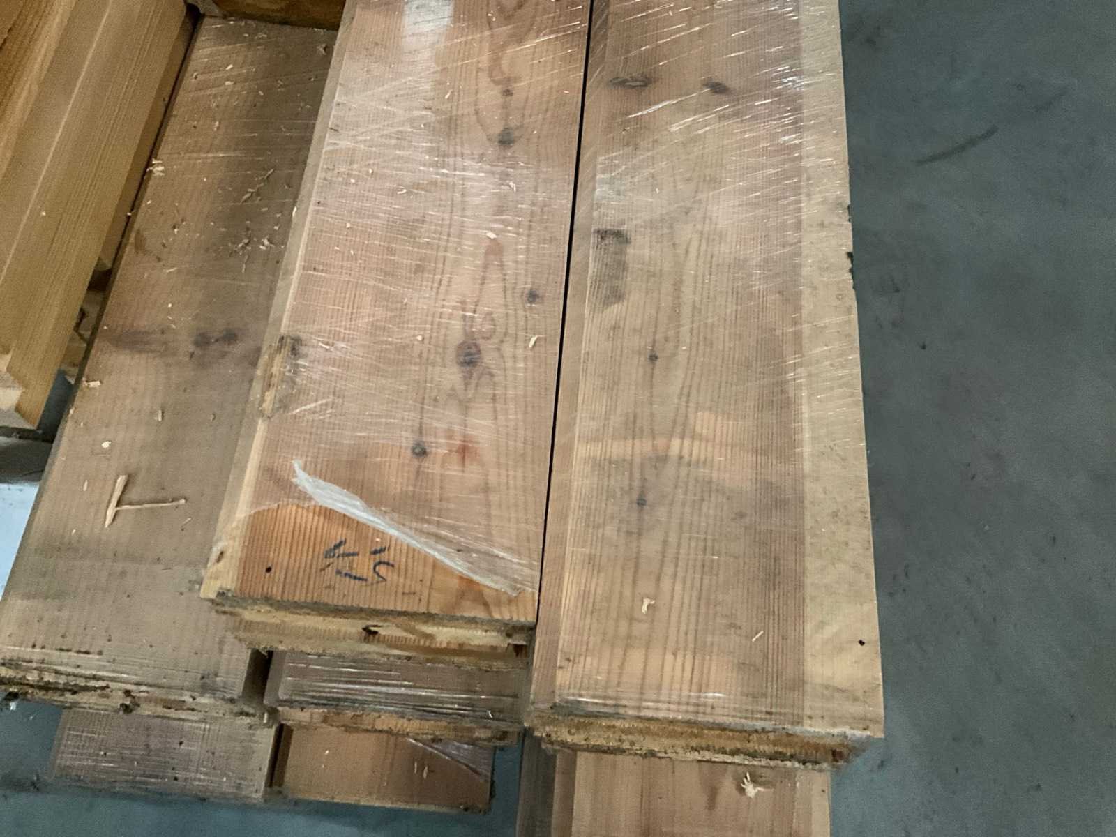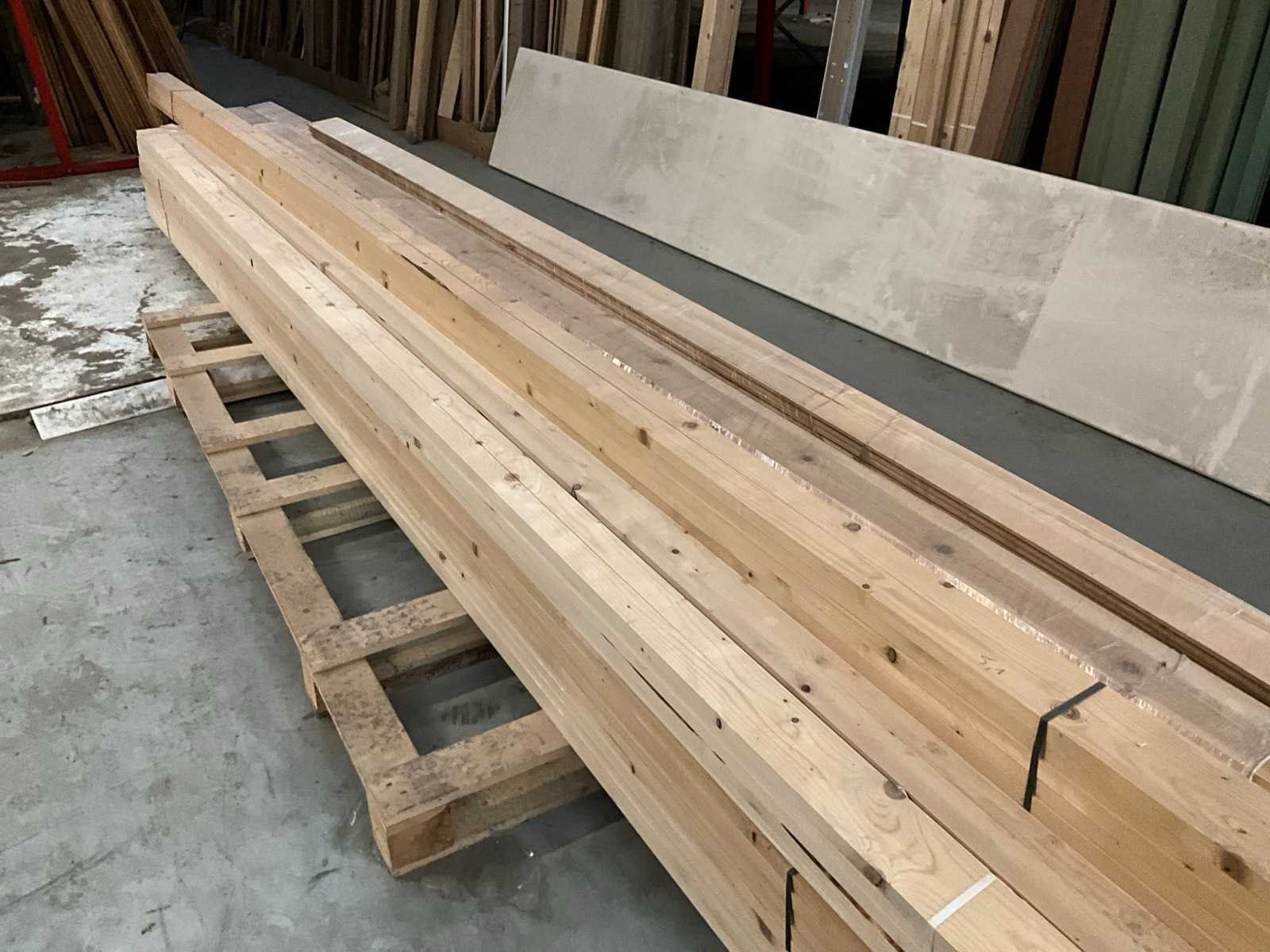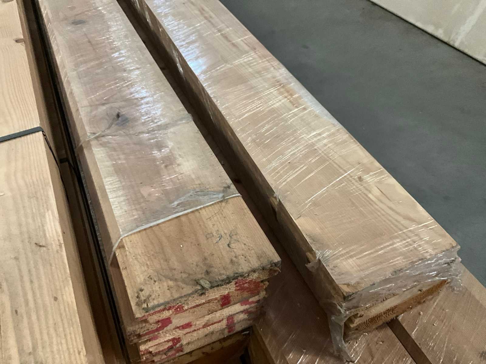 Waaronder latten tand en groef allen 11,5 cm breed, en met een lengte van 3,60 tot 5,10 meter, dikte 2 cm, compleet met diverse kepers 4,5 x 2 cm en 450 cm lang. Nee