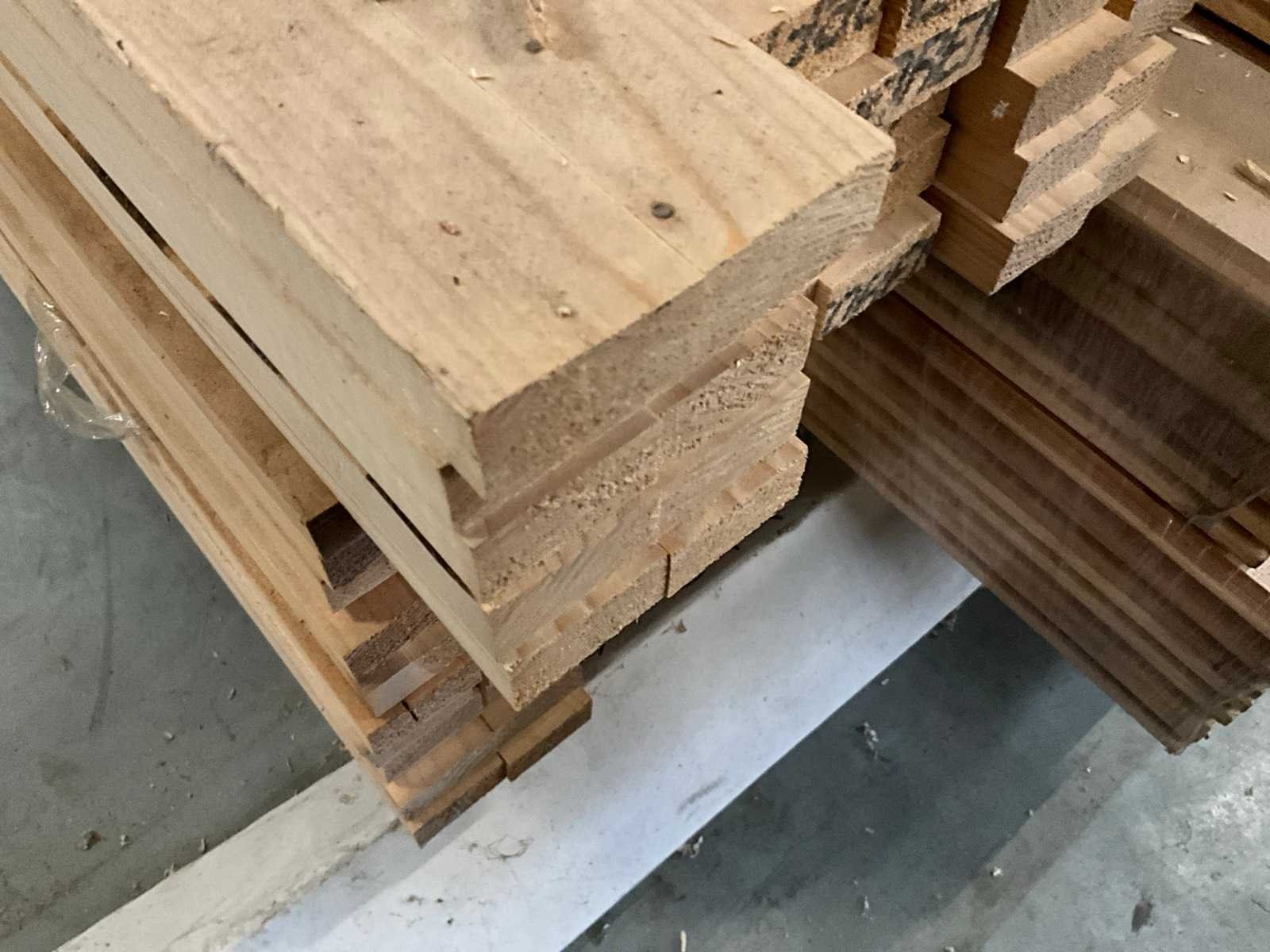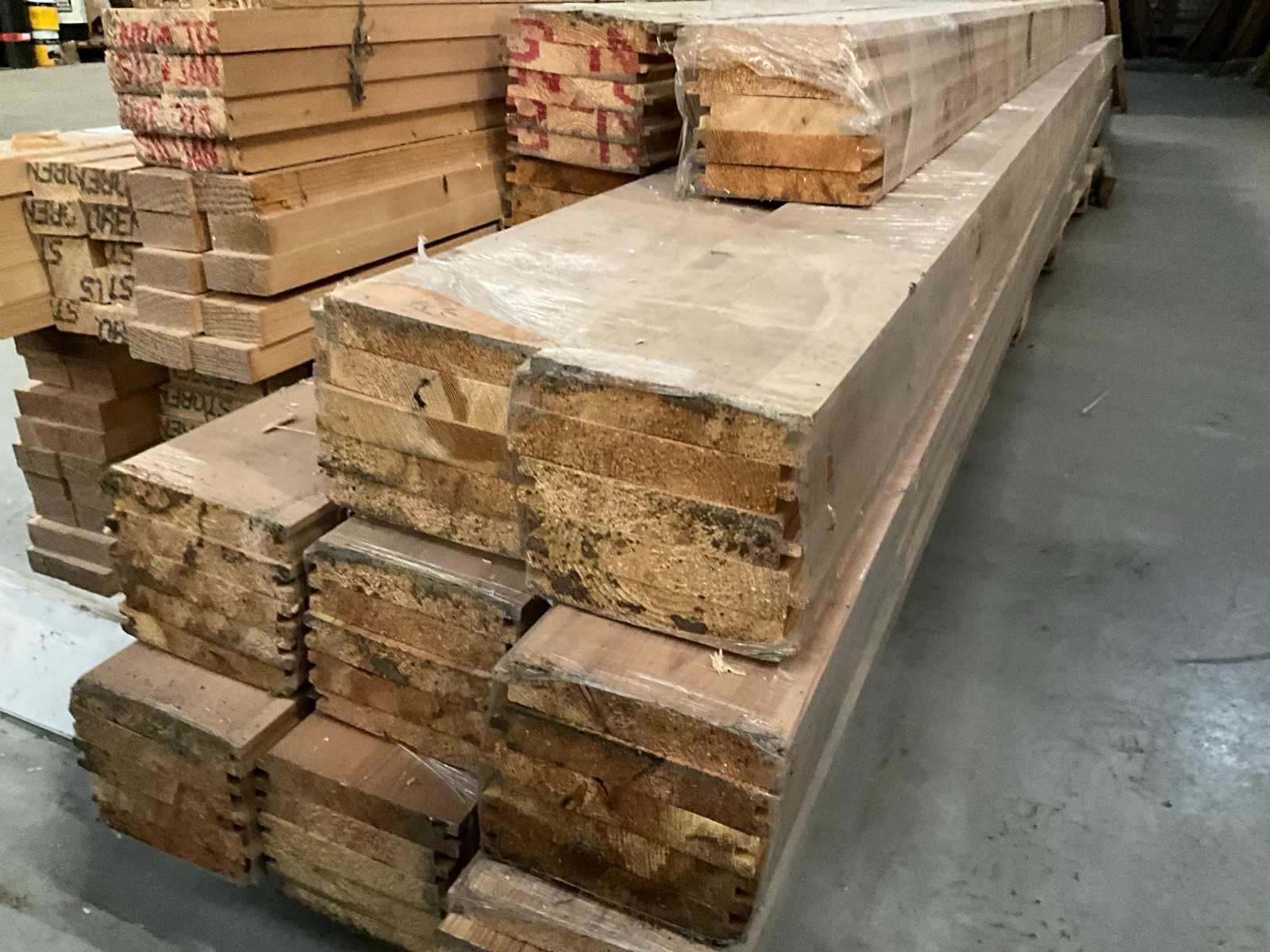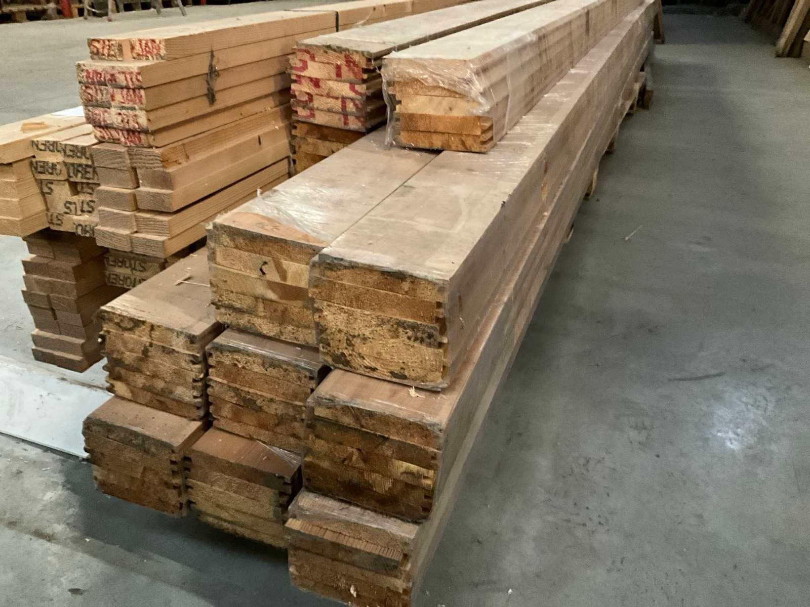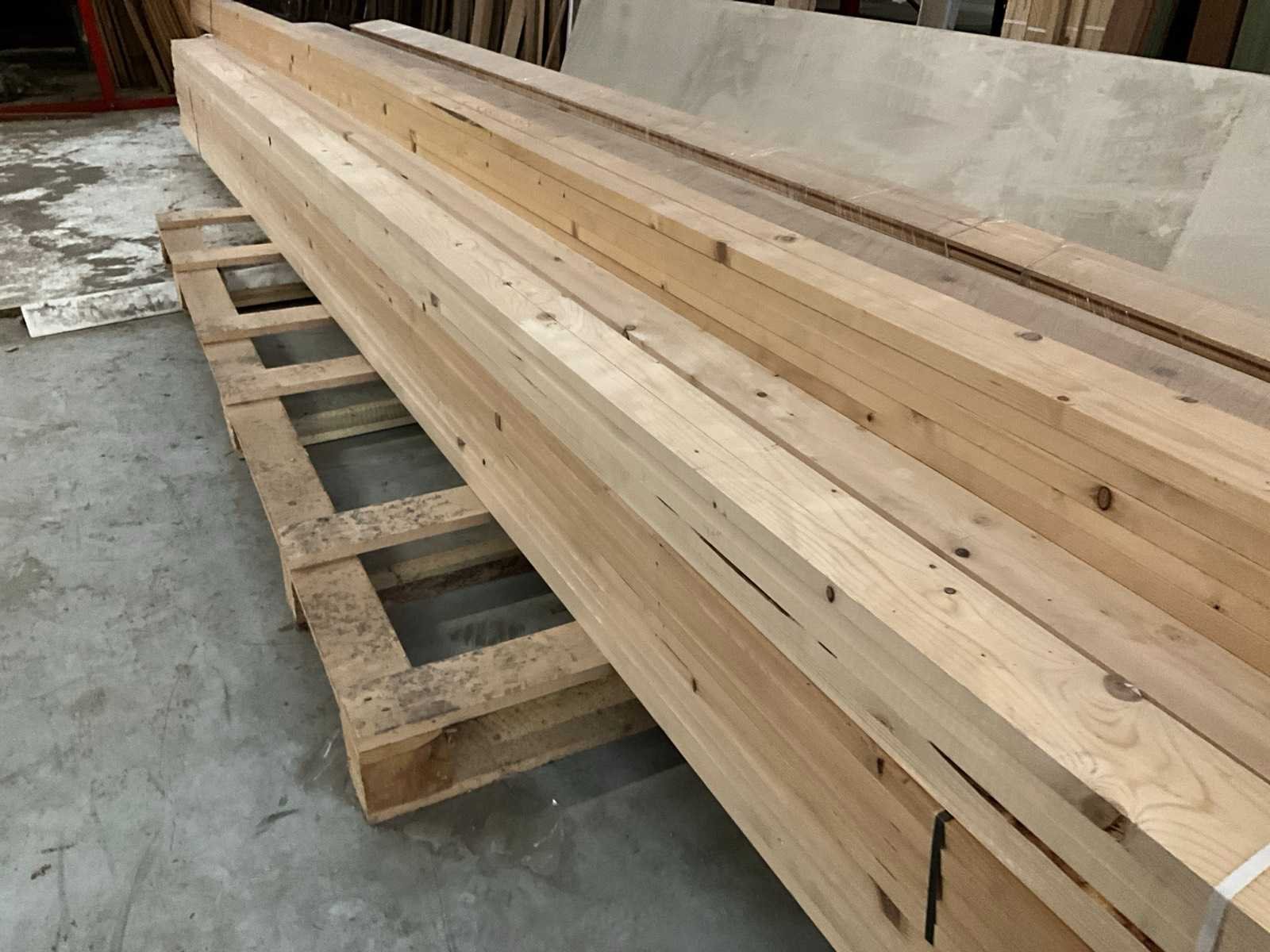 Waaronder latten tand en groef allen 11,5 cm breed, en met een lengte van 3,60 tot 5,10 meter, dikte 2 cm, compleet met diverse kepers 4,5 x 2 cm en 450 cm lang. Nee