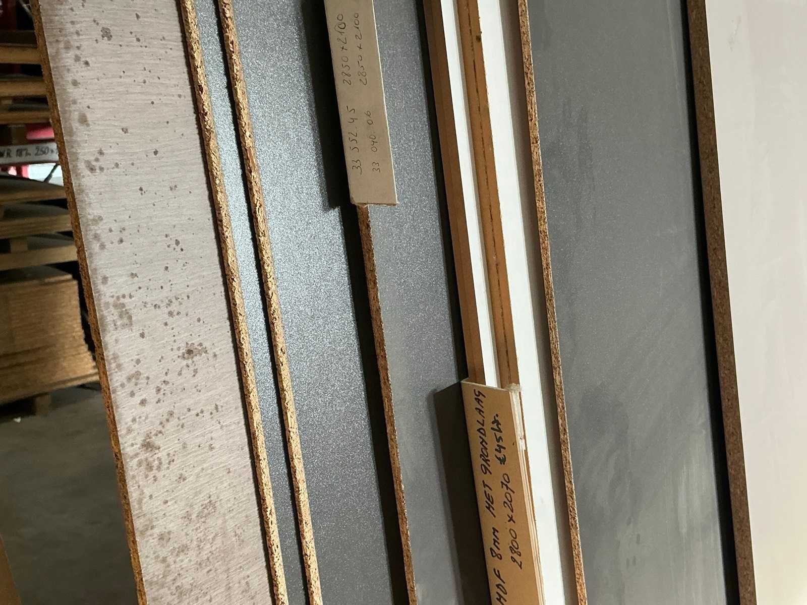 Inhoudende partij diverse houten platen waaronder brandwerende Black MDF, spaanplaten en melamineplaten, Waaronder 3050 x 1220 x 20mm, 2500 x 1850 x 30mm en 2850 x 2100 x 10mm Nee Afmeting l: 165cm Afmeting b: 100cm Afmeting h: 166cm