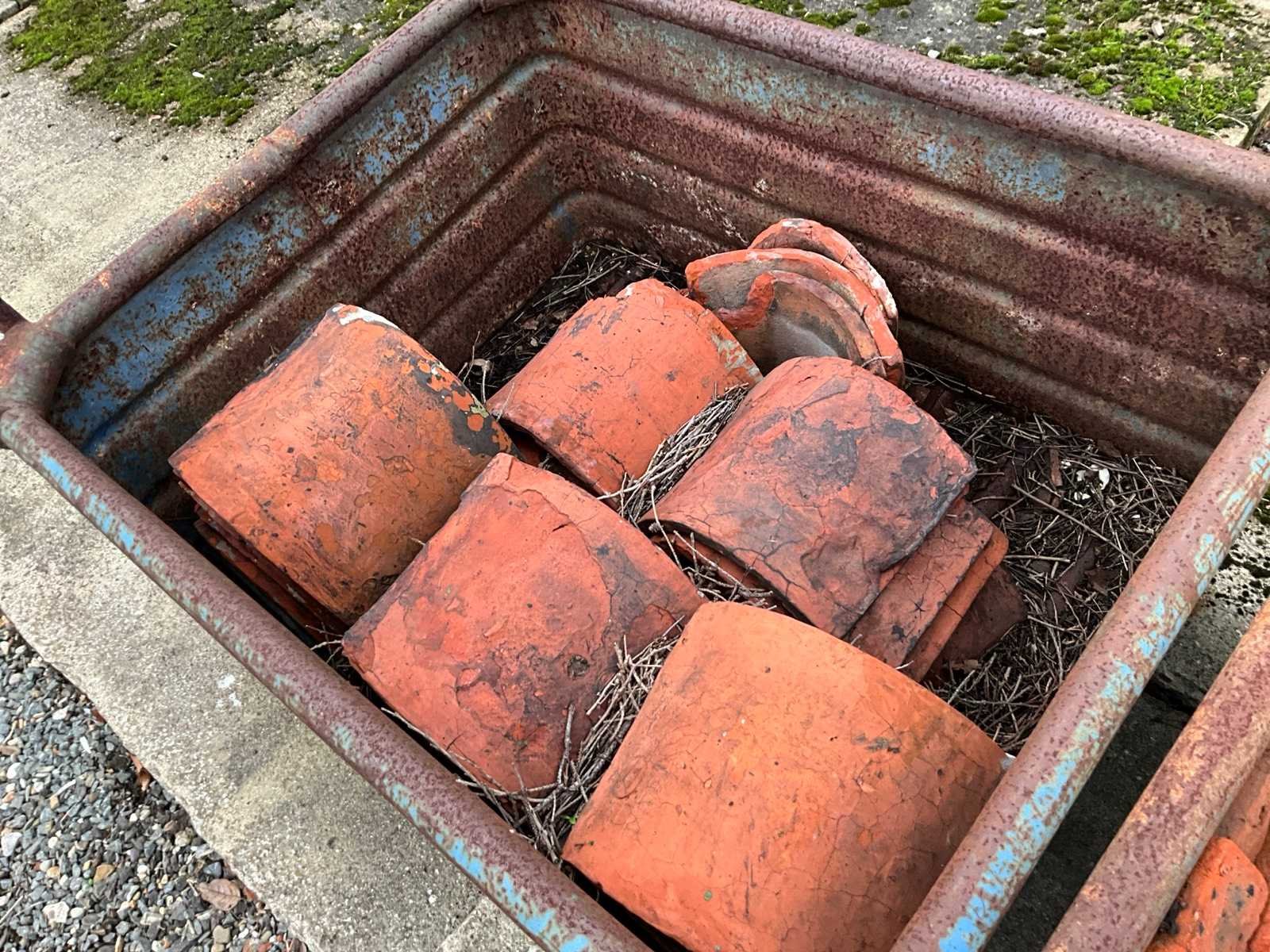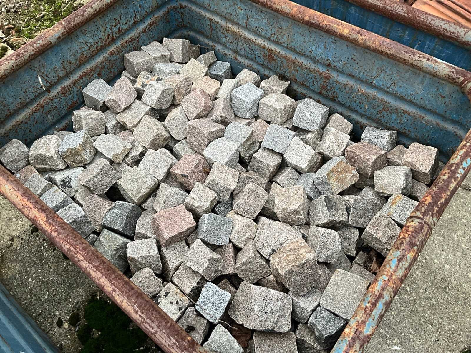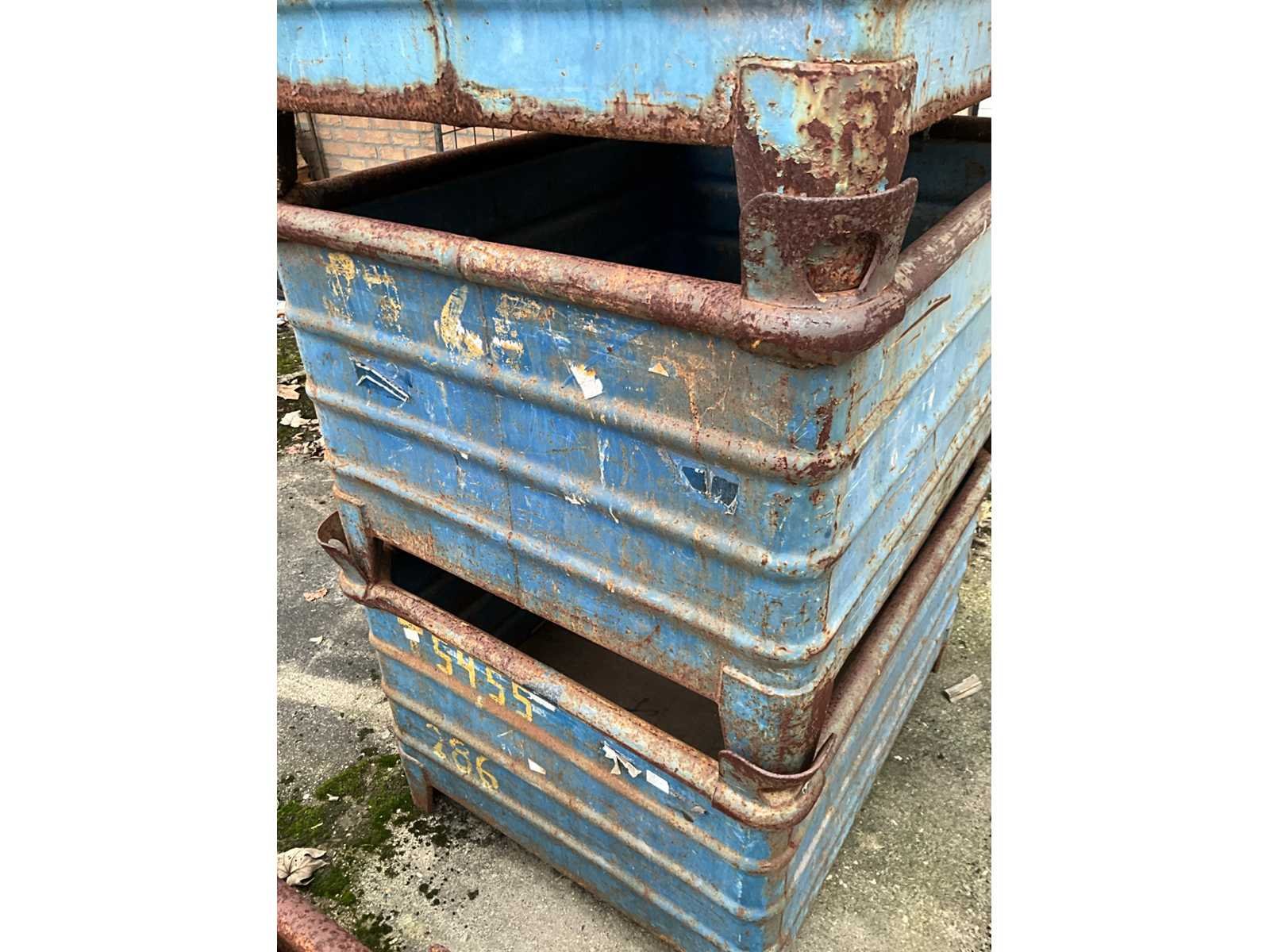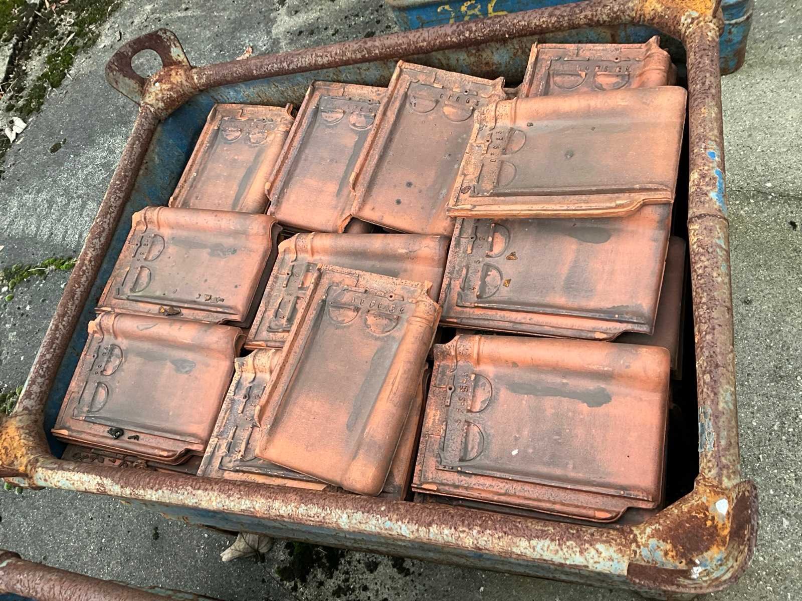 5 bakken inhoudende diverse dakpannen, 1 bak inhoudende sierstenen Nee Lengte: 84cm Breedte: 194cm Hoogte: 62cm Materiaal: Metaal