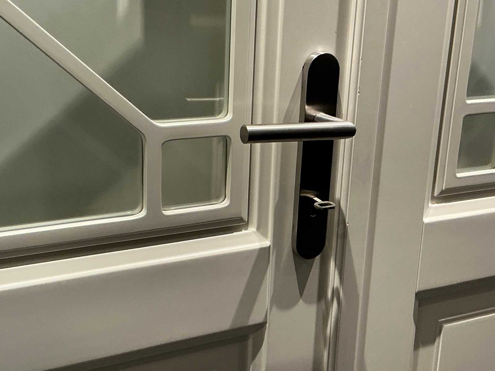 Showroom tubespaan overtrokken model, voorzien van slot, enkelzijdige klink en enkelzijdig kozijn, Door klant zelf te demonteren No Binnendeur: true Beglaasd: true Afmeting h: 2015mm Afmeting b: 1660mm Totale afmeting lxbxh: 1890x2130mm Type: Massief houten dubbele Hout: true Dikte: 40mm Kleur: Wit
