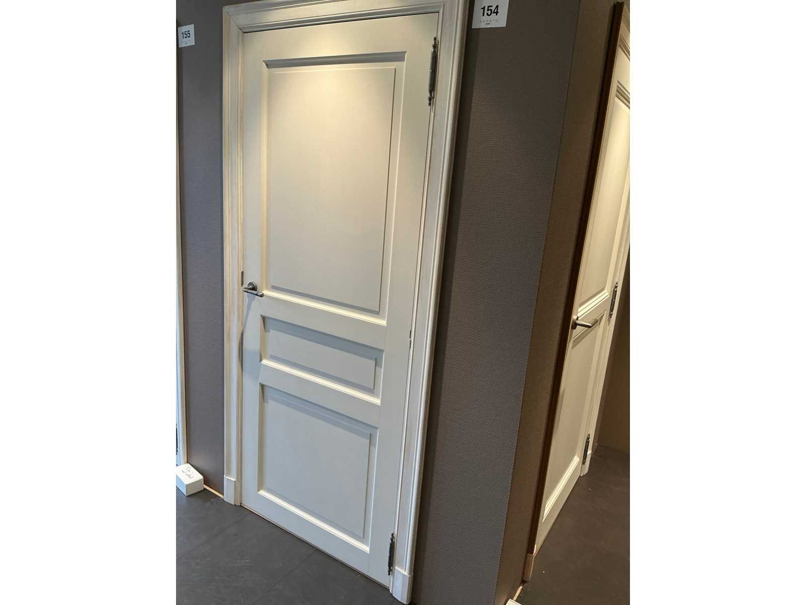 Showroom model, voorzien van slot, enkelzijdige klink en enkelzijdig kozijn, Door klant zelf te demonteren Nee Binnendeur: true Afmeting h: 2015mm Afmeting b: 830mm Totale afmeting lxbxh: 1020x2120mm Type: Massief houten Hout: true Dikte: 40mm Kleur: Wit