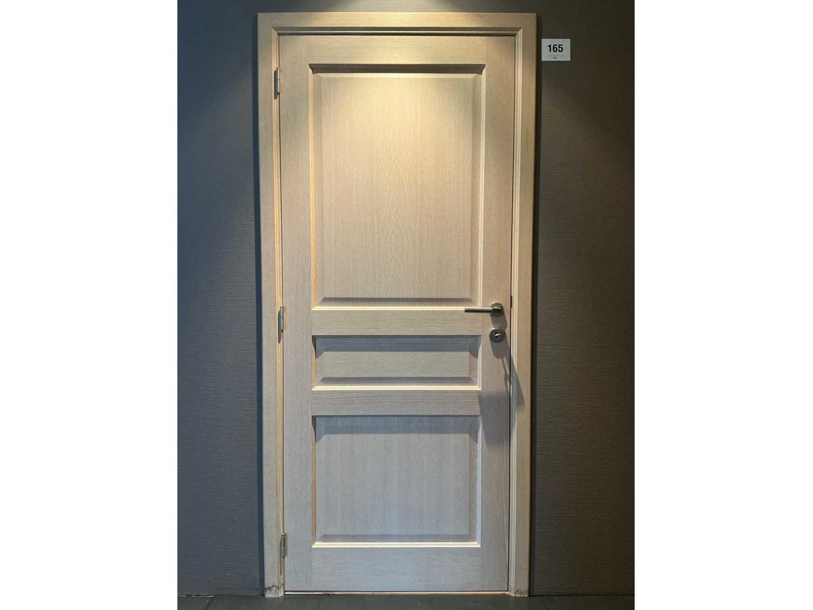 Showroom model, voorzien van slot, enkelzijdige klink en enkelzijdig kozijn, Door klant zelf te demonteren Nee Binnendeur: true Afmeting h: 2015mm Afmeting b: 830mm Totale afmeting lxbxh: 980x2100mm Type: Massief eikenhouten Hout: true Dikte: 40mm Kleur: Eik