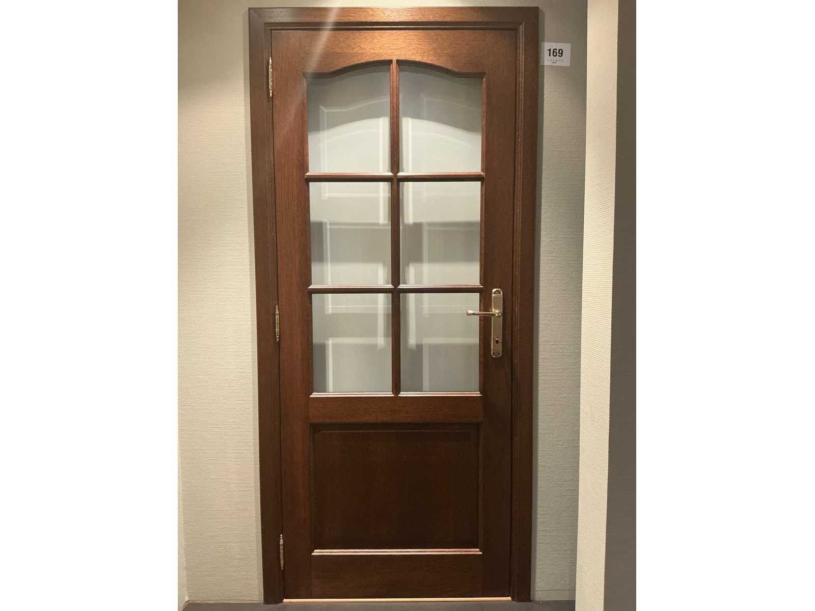 Showroom model, voorzien van slot, enkelzijdige klink en enkelzijdig kozijn, Door klant zelf te demonteren Nee Binnendeur: true Beglaasd: true Afmeting h: 2015mm Afmeting b: 830mm Totale afmeting lxbxh: 980x2100mm Type: Massief eikenhouten Hout: true Dikte: 40mm Kleur: Eik