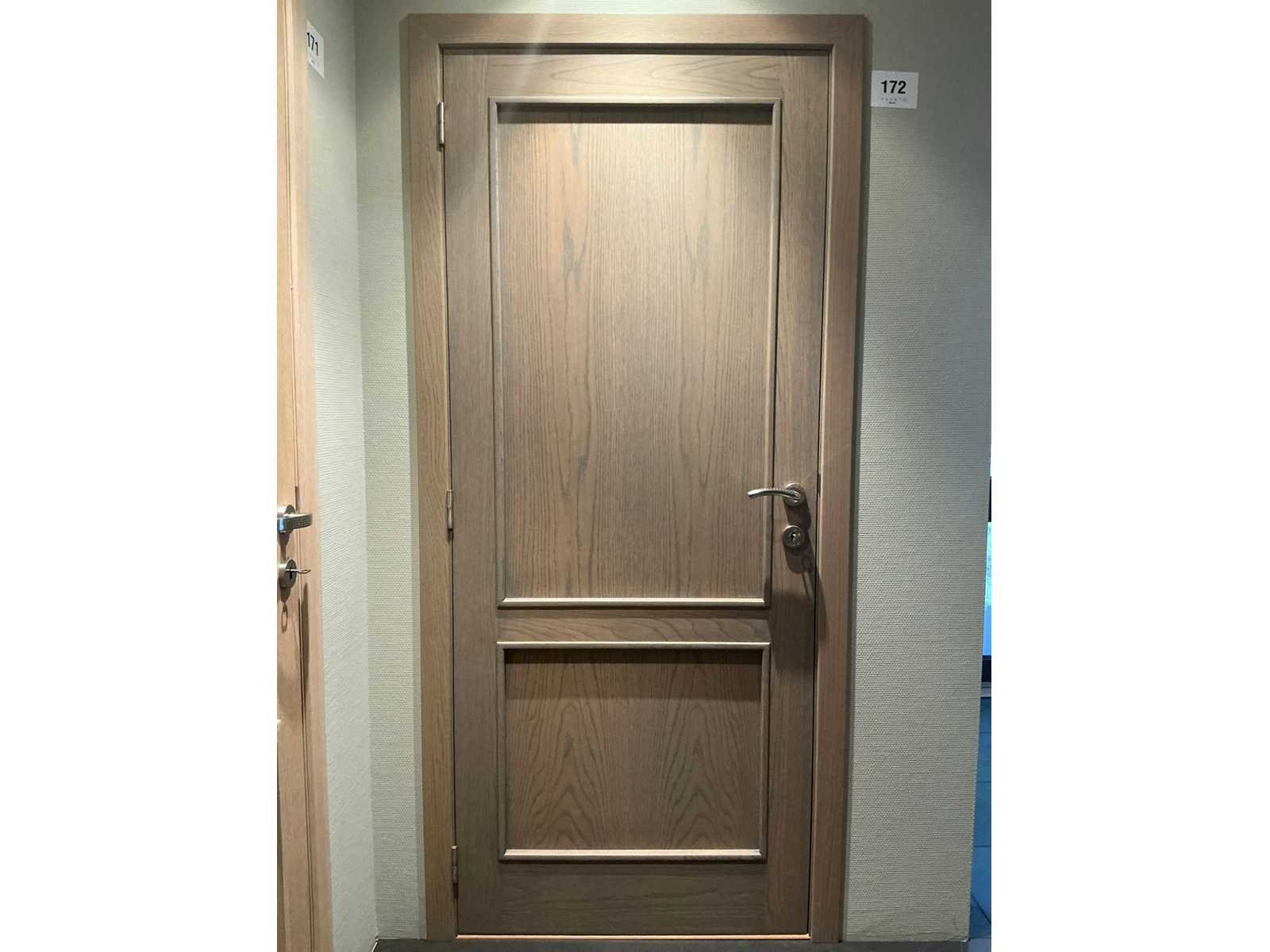 Showroom model, voorzien van slot, enkelzijdige klink en enkelzijdig kozijn, Door klant zelf te demonteren Nee Binnendeur: true Afmeting h: 2015mm Afmeting b: 830mm Totale afmeting lxbxh: 980x2100mm Type: Massief eikenhouten Hout: true Dikte: 40mm Kleur: Eik