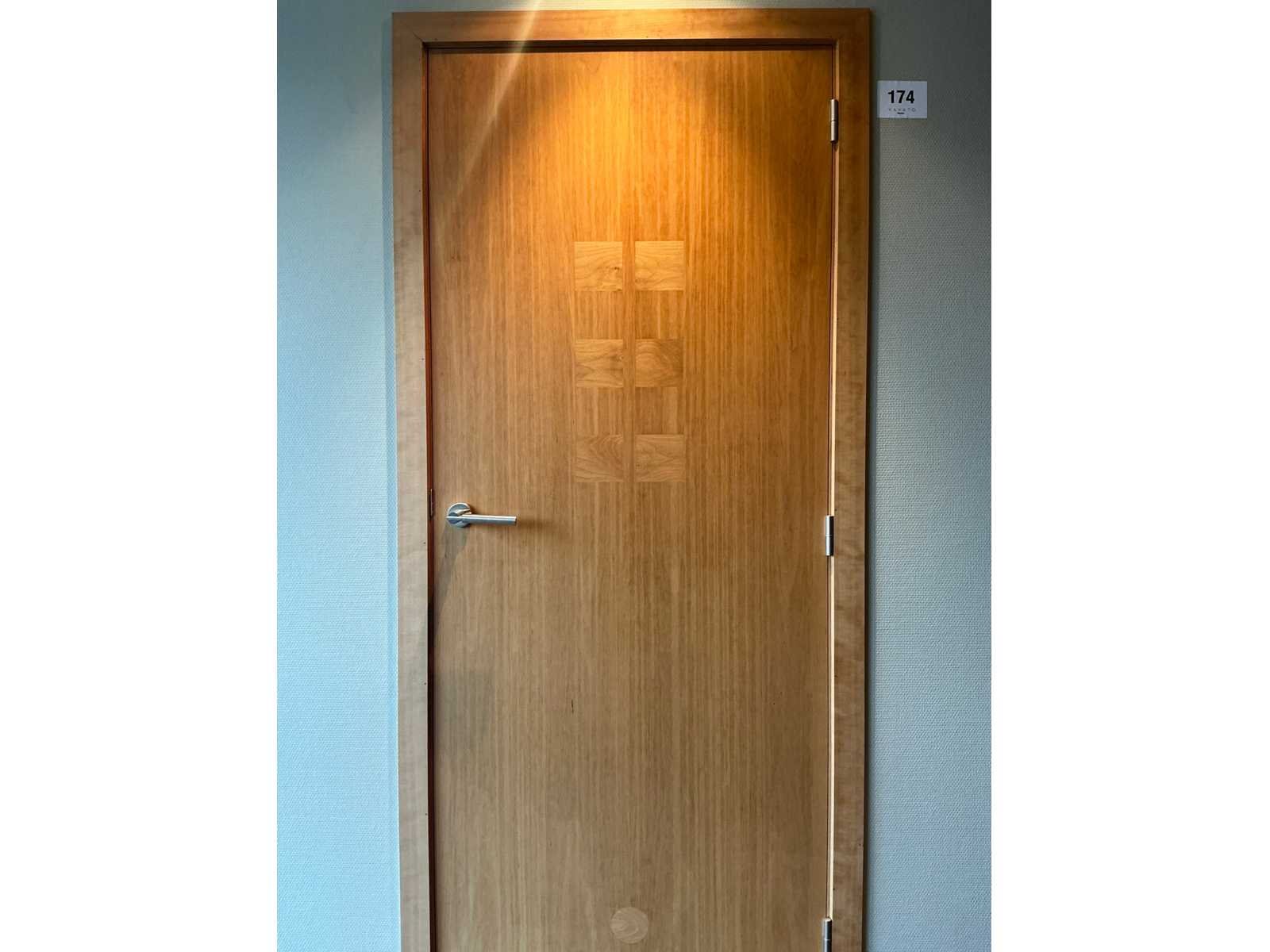 Showroom model, voorzien van slot, enkelzijdige klink en enkelzijdig kozijn, Door klant zelf te demonteren Nee Binnendeur: true Afmeting h: 2015mm Afmeting b: 830mm Totale afmeting lxbxh: 970x2100mm Type: Massief houten Hout: true Dikte: 40mm Kleur: Naturel