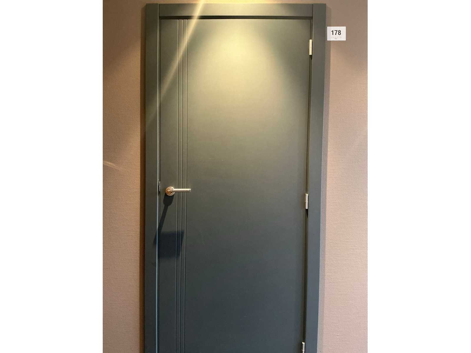 Showroom model, voorzien van slot, enkelzijdige klink en enkelzijdig kozijn, Door klant zelf te demonteren Nee Binnendeur: true Afmeting h: 2015mm Afmeting b: 830mm Totale afmeting lxbxh: 990x2110mm Type: Massief houten Hout: true Dikte: 40mm Kleur: Antraciet