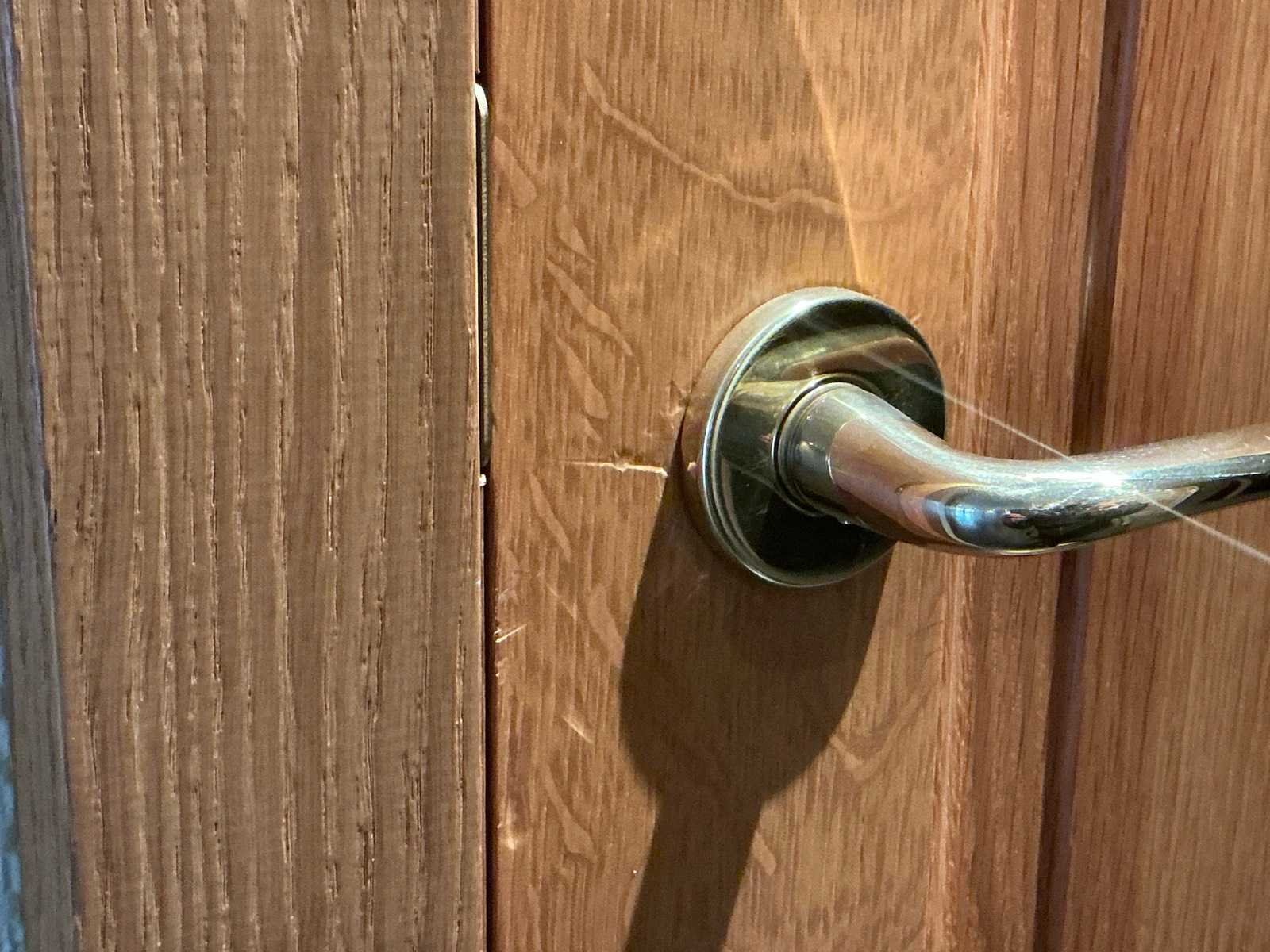 Showroom model, voorzien van slot, enkelzijdige klink en enkelzijdig kozijn, Door klant zelf te demonteren Nee Binnendeur: true Afmeting h: 2015mm Afmeting b: 830mm Totale afmeting lxbxh: 970x2100mm Type: Massief eikenhouten Hout: true Dikte: 50mm Kleur: Eik