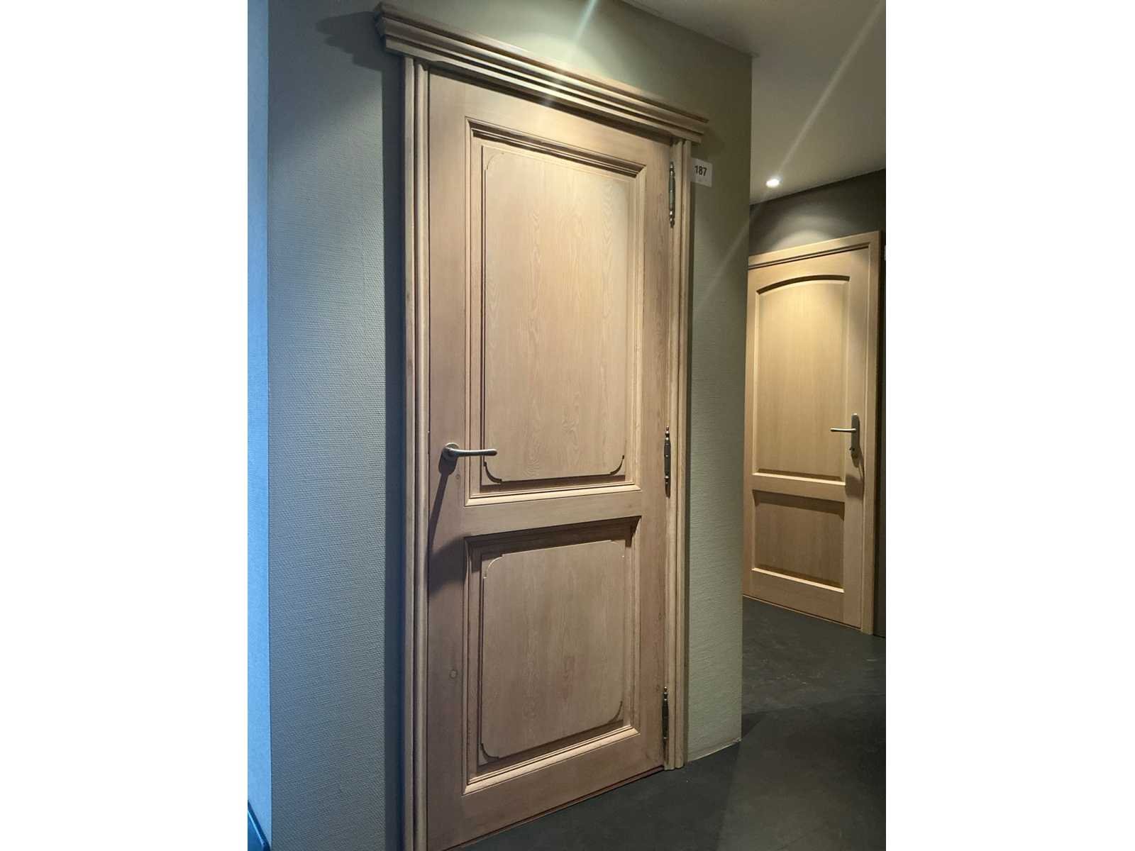 Showroom model, voorzien van slot, enkelzijdige klink en enkelzijdig kozijn, Door klant zelf te demonteren Nee Binnendeur: true Afmeting h: 2015mm Afmeting b: 830mm Totale afmeting lxbxh: 980/1120x2140mm Type: Massief eikenhouten Hout: true Dikte: 50mm Kleur: Eik