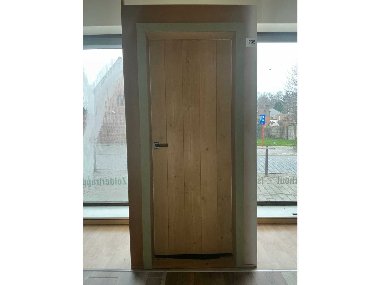 Showroom model, voorzien dubbelzijdige klink en volledige houten omkasting Nee Binnendeur: true Afmeting h: 2015mm Afmeting b: 780mm Totale afmeting lxbxh: 1110x230x2230mm Type: Massief eikenhouten Hout: true Dikte: 40mm Kleur: Eik