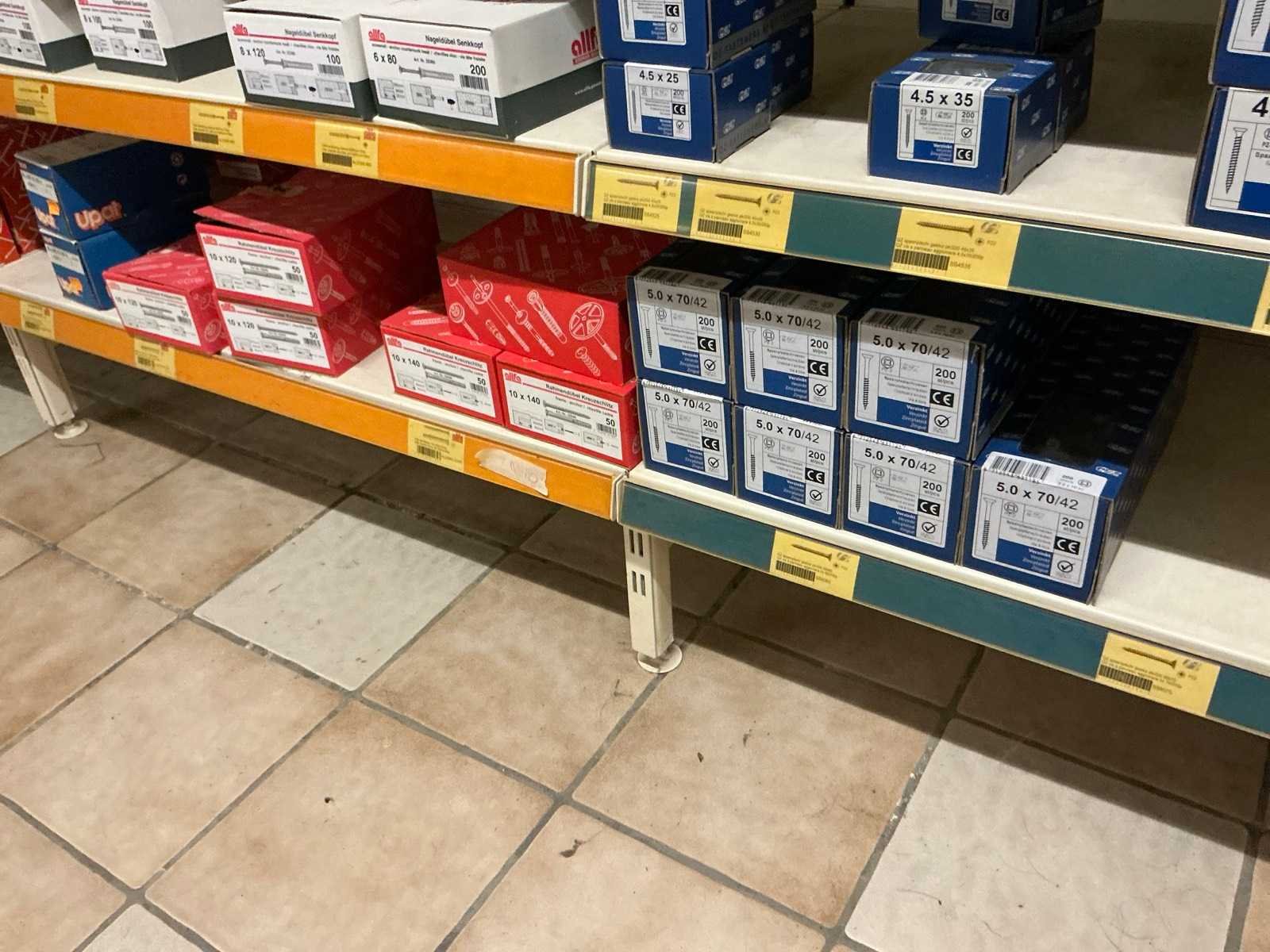 Ca 17 lm divers enkelzijdig winkelrek, hoogte ca 245cm, Waaronder ca 4 lm dubbelzijdig met hoogte ca 153cm, Zonder enige inhoud, Afgifte volgens aanwijzing Nee Type: Gondella