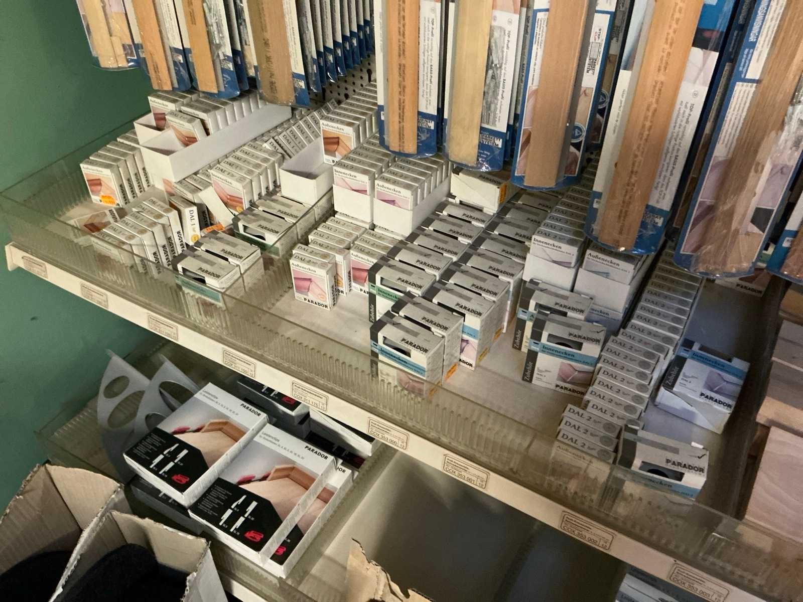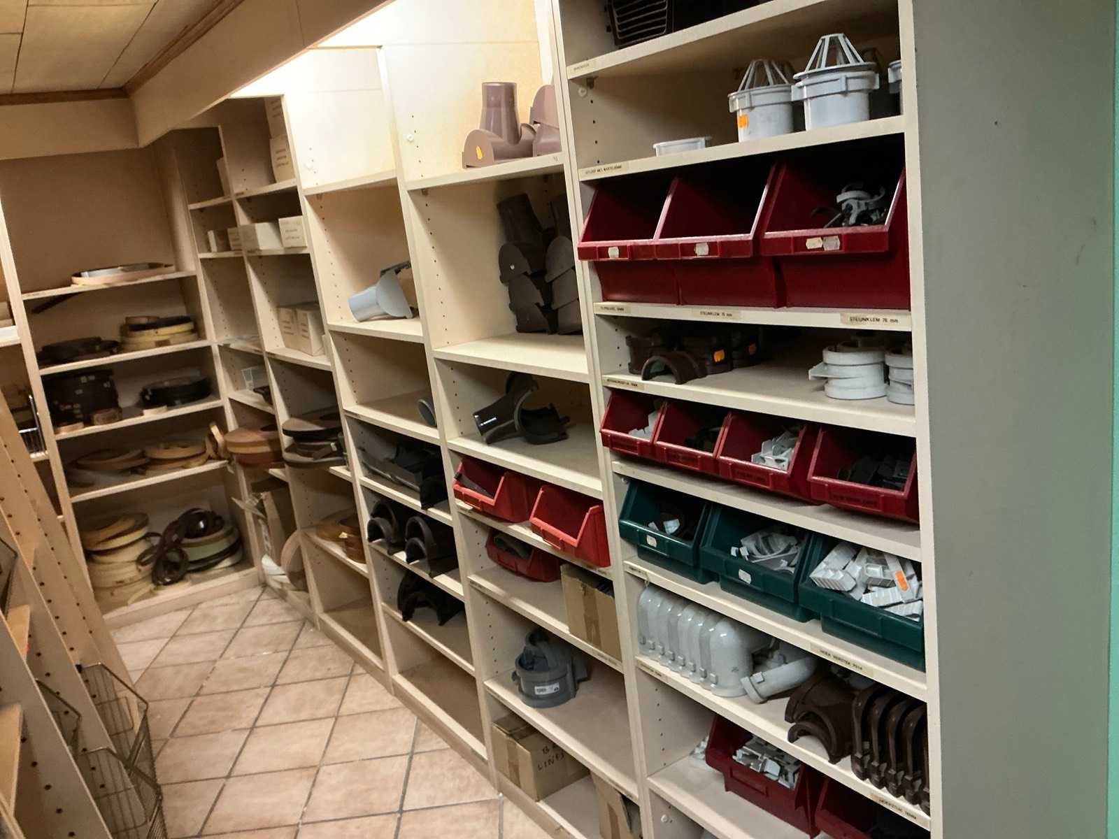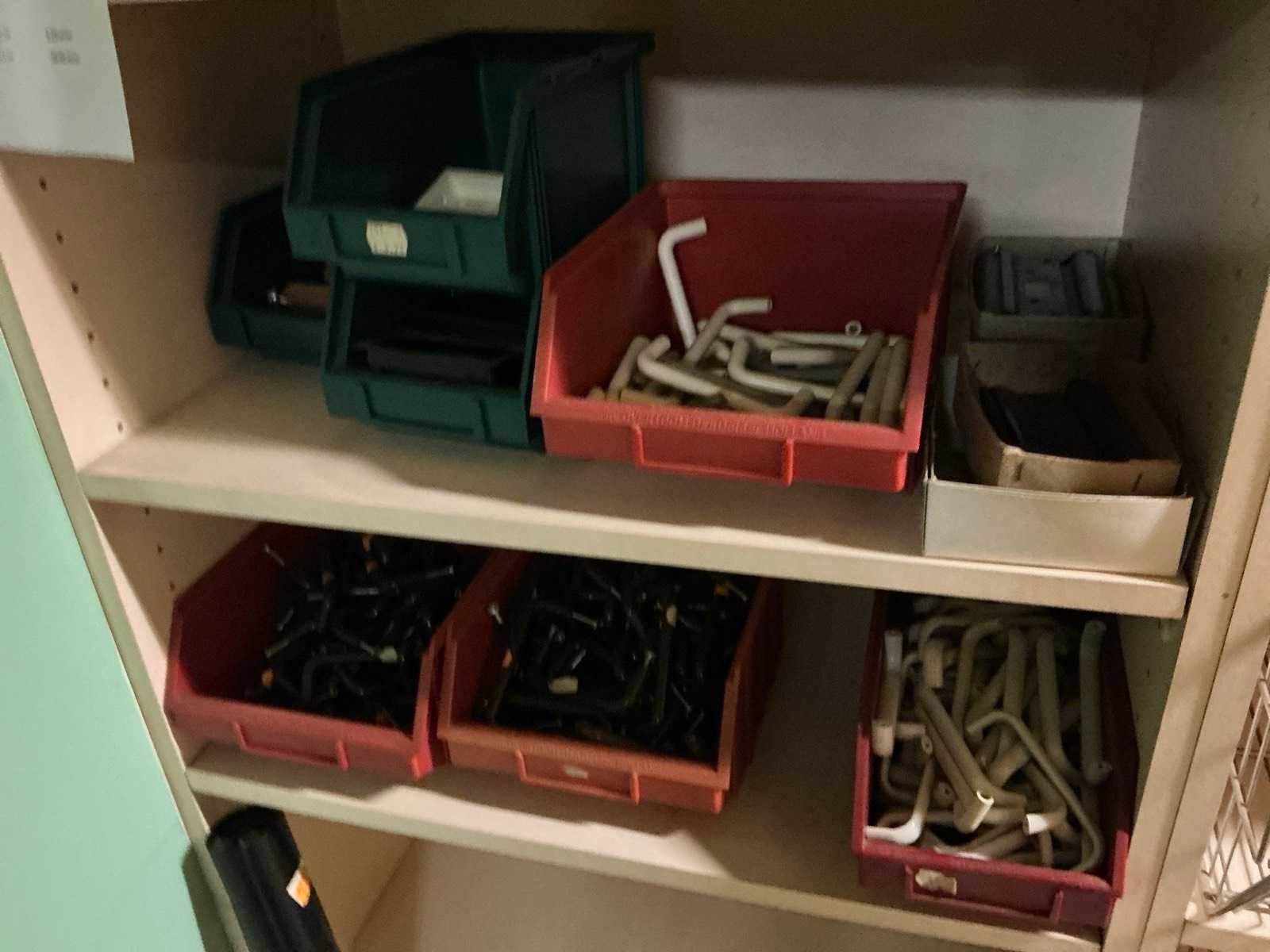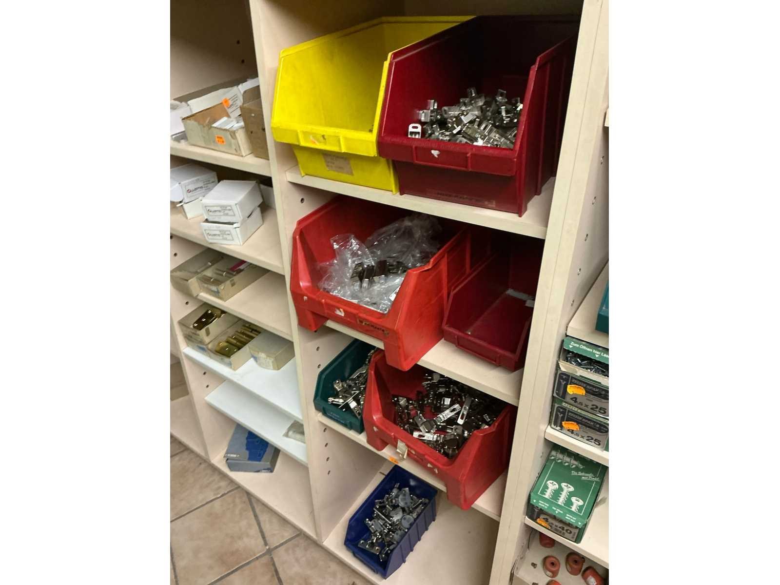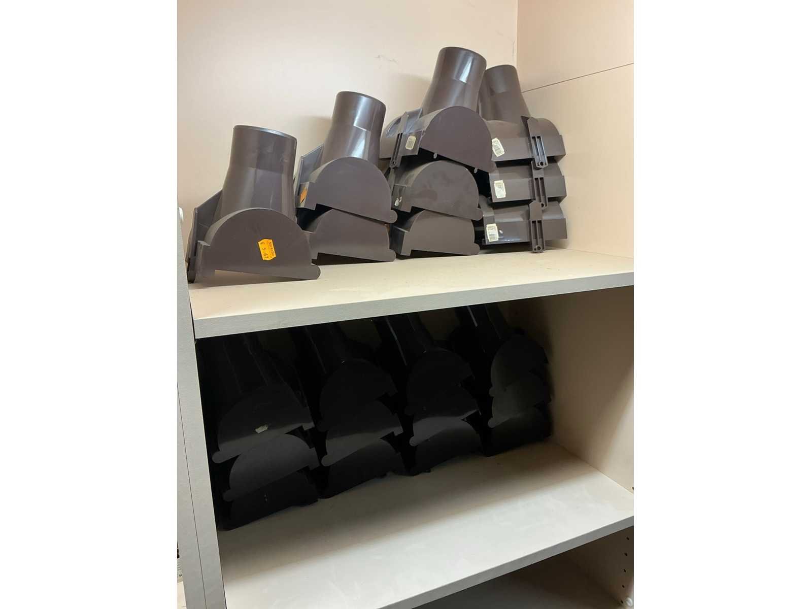 Waaronder bestaande uit: 2 jaloezieën Velux, 18 metalen grondpiketten, 4 houten schragen, 1 displaystaander inhoudende diverse deurklinken, Partij diverse kast- en ladeonderdelen, Enige bevestigingsmaterialen, deursloten, pvc bochten en koppelstukken, Waaronder liggende in dubbelzijdig houten opbergmeubel, Metalen overgangsproblemen, klauwklemmen, plintconnectoren, plaketten, afsluitkleppen en rosetonderdelen, Uitgezonderd genummerde kavels en eigendomsvoorbehoud, Afgifte volgens aanwijzing Nee Type: Restinhoud