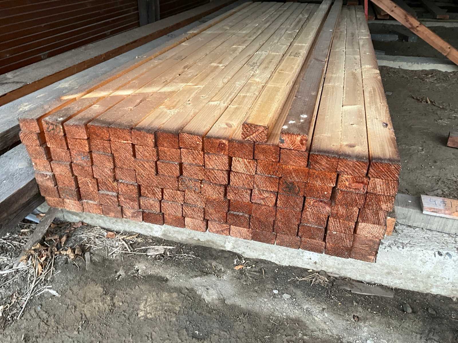 107x SLS C24 Balken afmeting 6x270x4cm. Compleet met ca. 28x RND balken en planken, waaronder afmetingen 480x13x3,5cm en 540x15x5cm. Nee