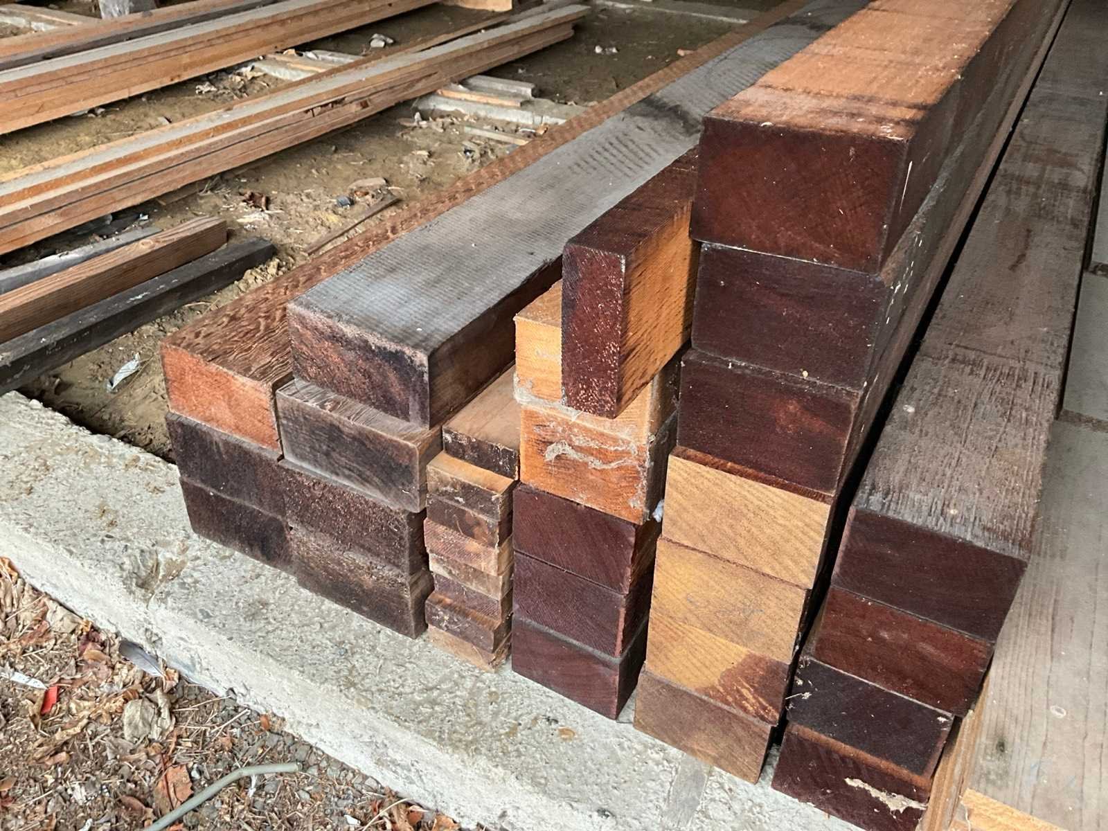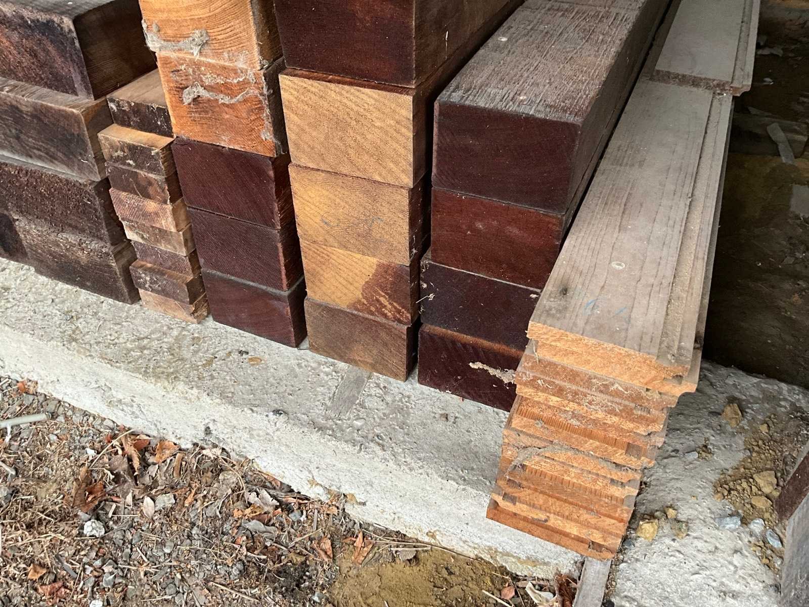 Diverse houten balken en planken (75x) waaronder ceder