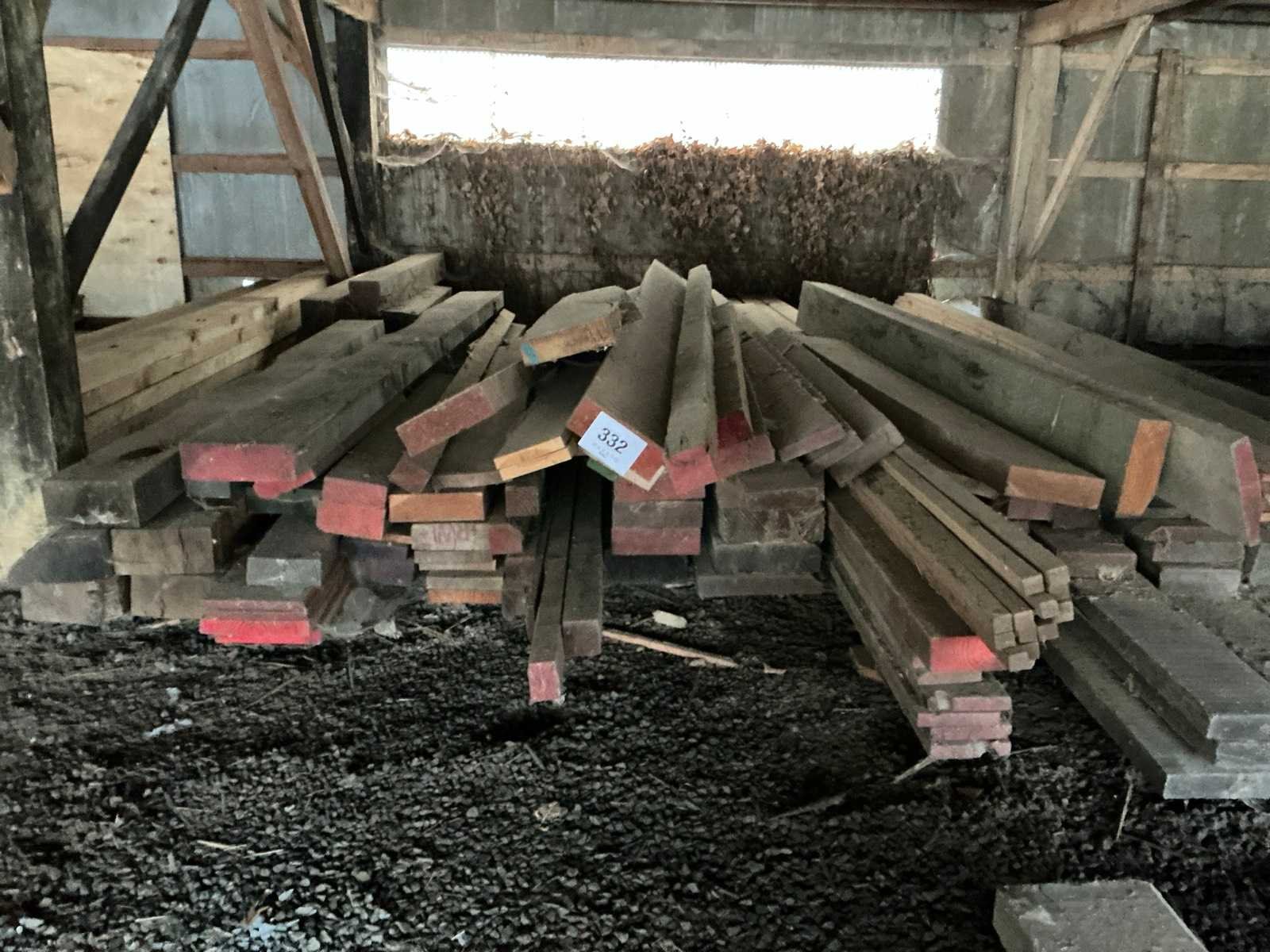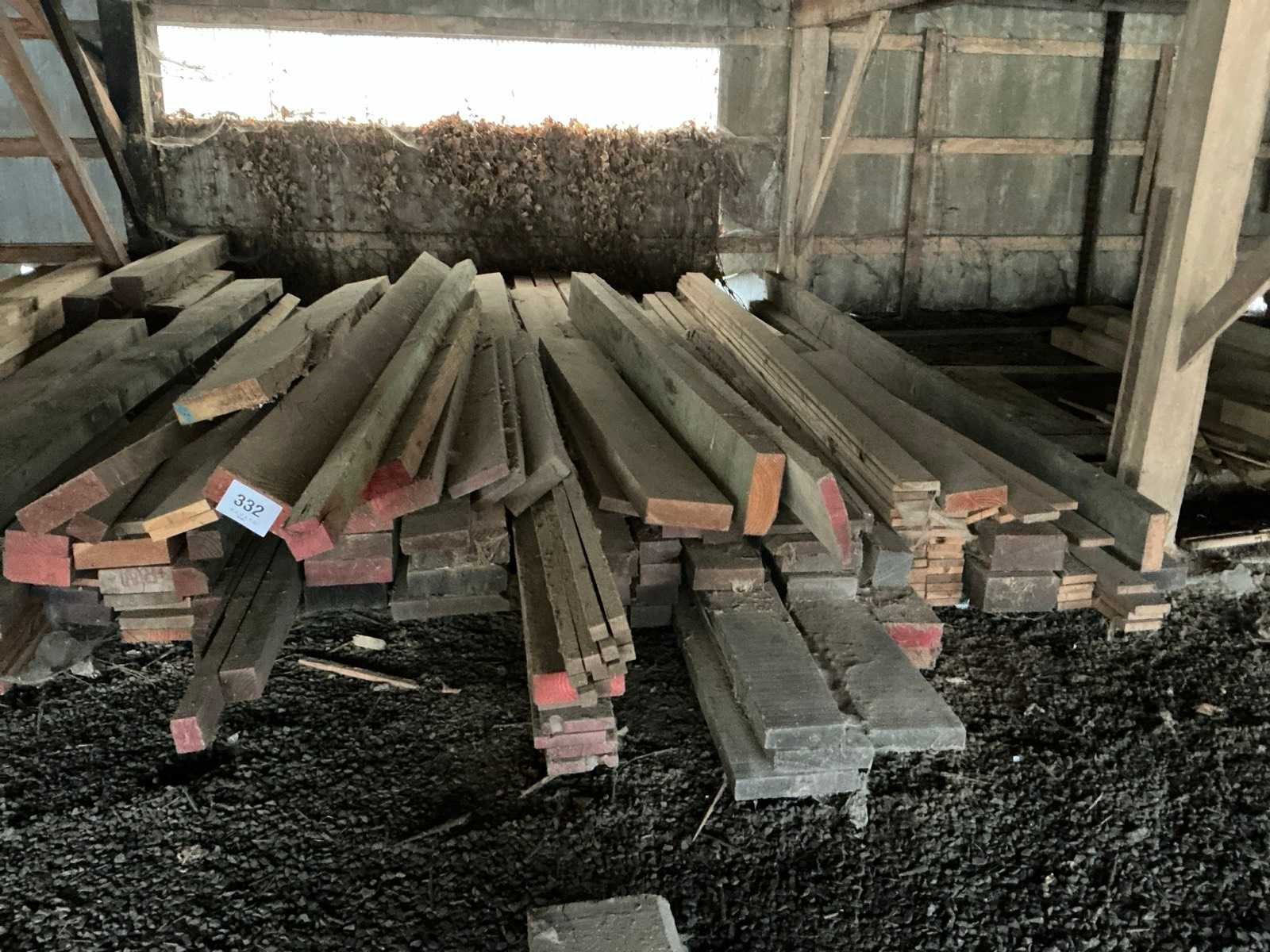 Diverse grenen balken compleet met enige eiken balken waaronder maximale lengte circa 480 cm , afgifte volgens aanwijzing Nee