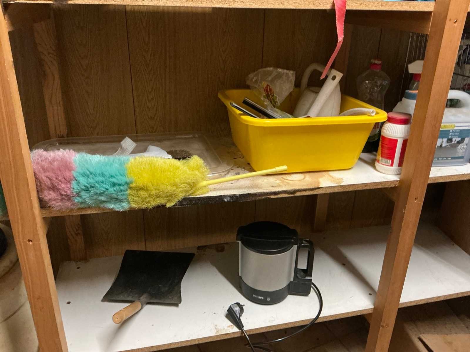 Bestaande uit partij diverse waaronder koffiezetapparaat Miko, partij reinigingsmiddelen waaronder aangesproken, partij divers bevestigingsmateriaal, waterkoker Philips, enzovoort Nee