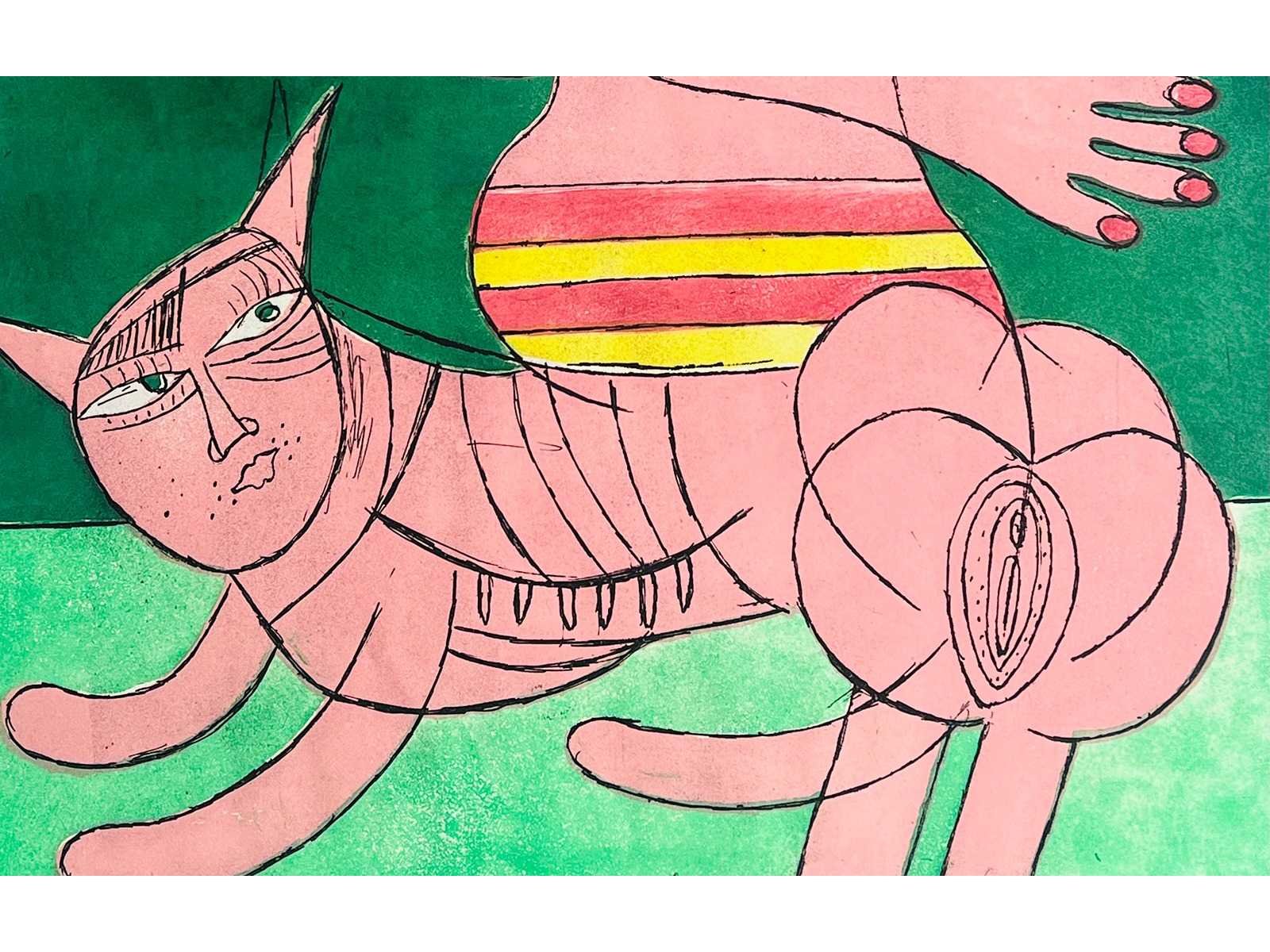 Zeldzame kleurenets uit 1977 - uitgegeven door GKM, Malmö (Zweden) - uitzonderlijk HC (hors commerce) exemplaar - mooi ingelijst met passe-partout - galerieprijs: 750 euro (niet ingelijst) @ galerie Michel Champetier Nee Kunstenaar: Corneille (Luik 1922-2010) Titel van werk: Femme et faune familière Periode: 1977 Techniek: Kleurenets Handtekening/oplage: true Gesigneerd: getekend en genummerd Hoogte: 76cm Breedte: 57cm